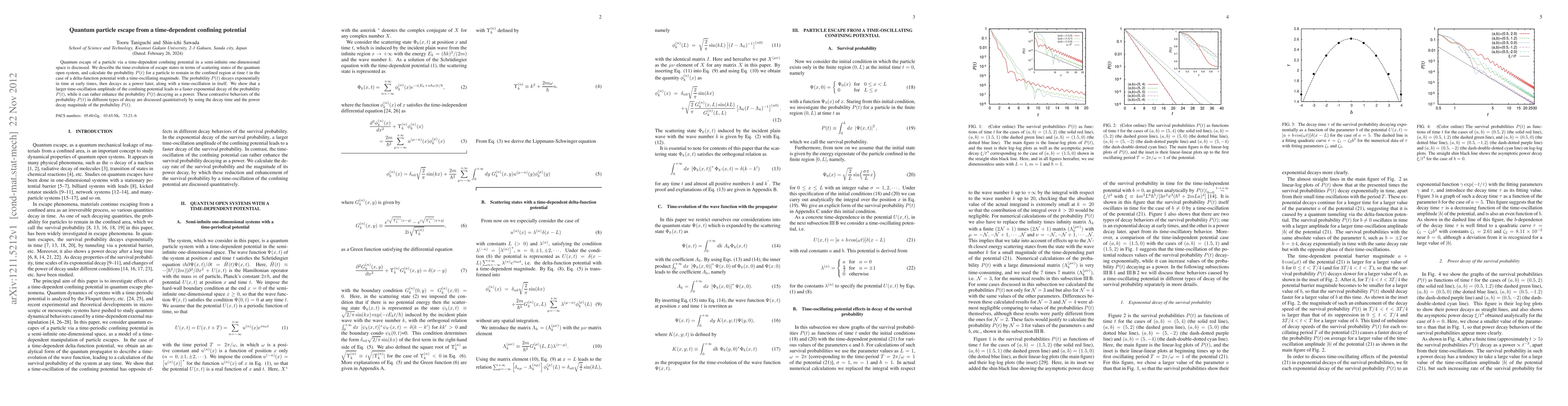 This paper investigates quantum escape dynamics in a time-dependent confining potential, finding that the probability $P(t)$ of a particle remaining in the confined region decays exponentially initially, then as a power law, with varying rates influenced by the potential's oscillation amplitude. The study quantifies these decay behaviors using the decay time and power decay magnitude.