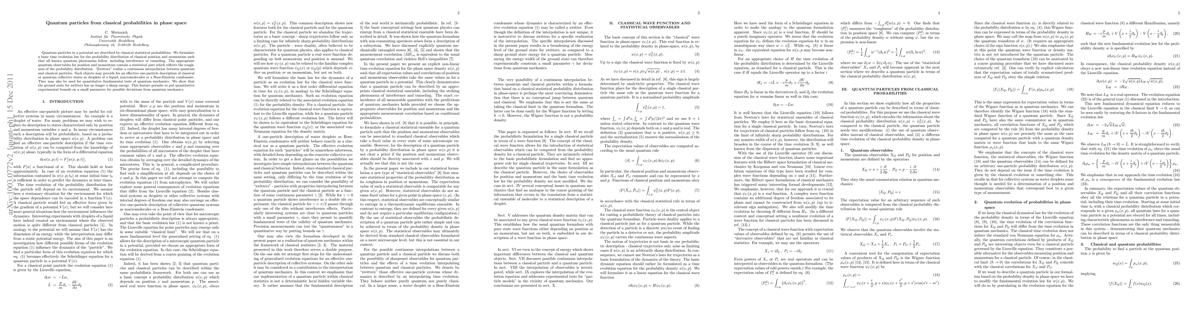 This paper proposes a framework where quantum particles are described by classical statistical probabilities in phase space, leading to a time evolution law that reproduces known quantum phenomena. "Zwitters," a new class of objects, interpolate between quantum and classical particles and can describe collective states like liquid droplets or Bose-Einstein condensates, providing a basis for fundamental tests of quantum mechanics and setting experimental bounds on deviations from quantum behavior.