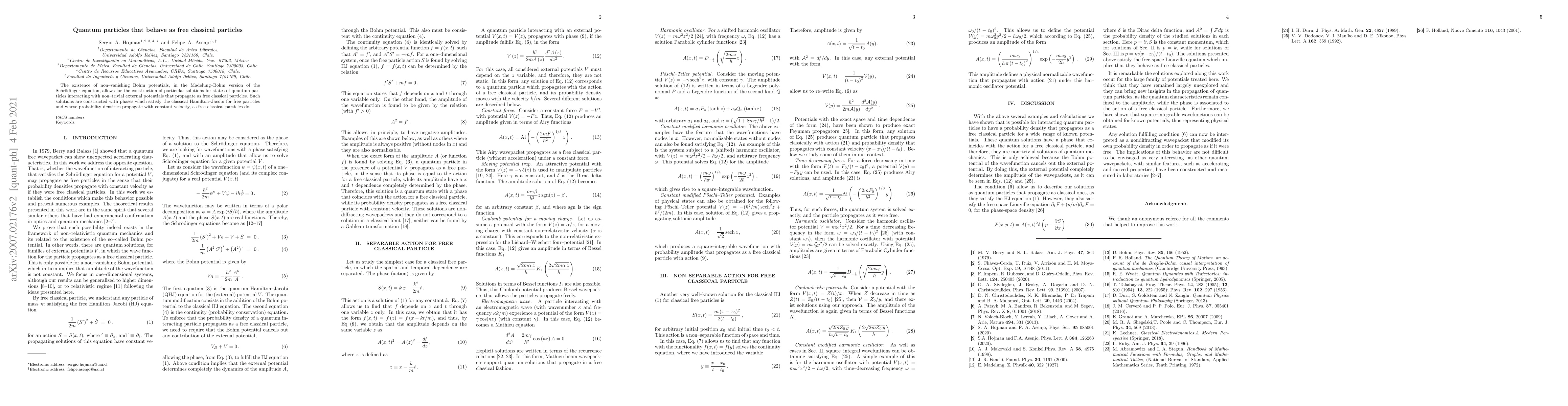 The existence of non-vanishing Bohm potentials, in the Madelung-Bohm version of the Schr\"odinger equation, allows for the construction of particular solutions for states of quantum particles interacting with non-trivial external potentials that propagate as free classical particles. Such solutions are constructed with phases which satisfy the classical Hamilton-Jacobi for free particles and whose probability densities propagate with constant velocity, as free classical particles do.