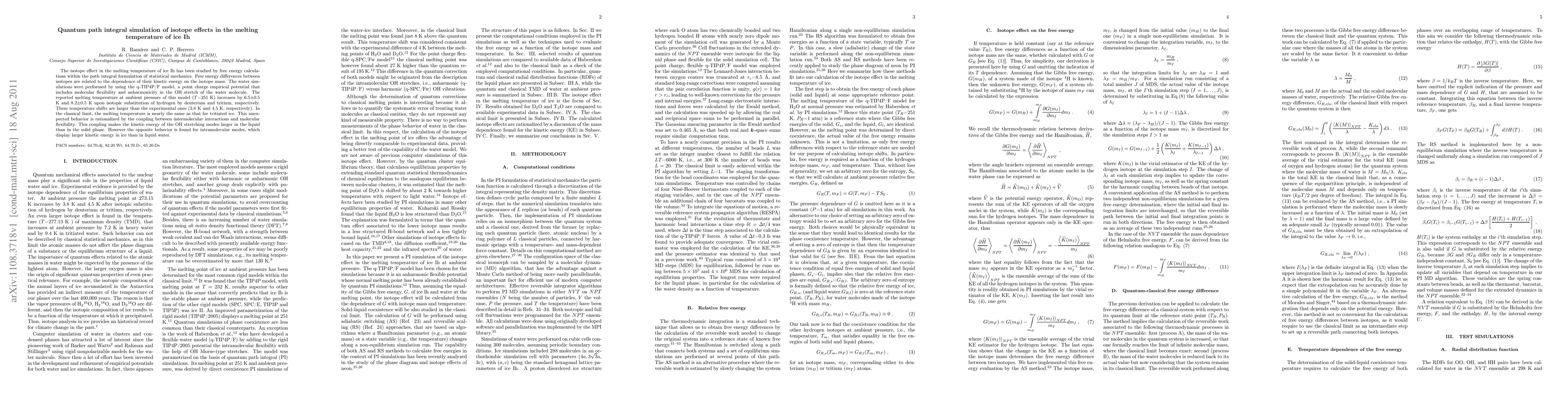 This study uses quantum path integral simulations to investigate isotope effects on the melting temperature of ice Ih, revealing significant shifts upon hydrogen substitution with deuterium and tritium. The simulations show larger temperature increases than experimental values, attributed to the interplay between intermolecular interactions and molecular flexibility.