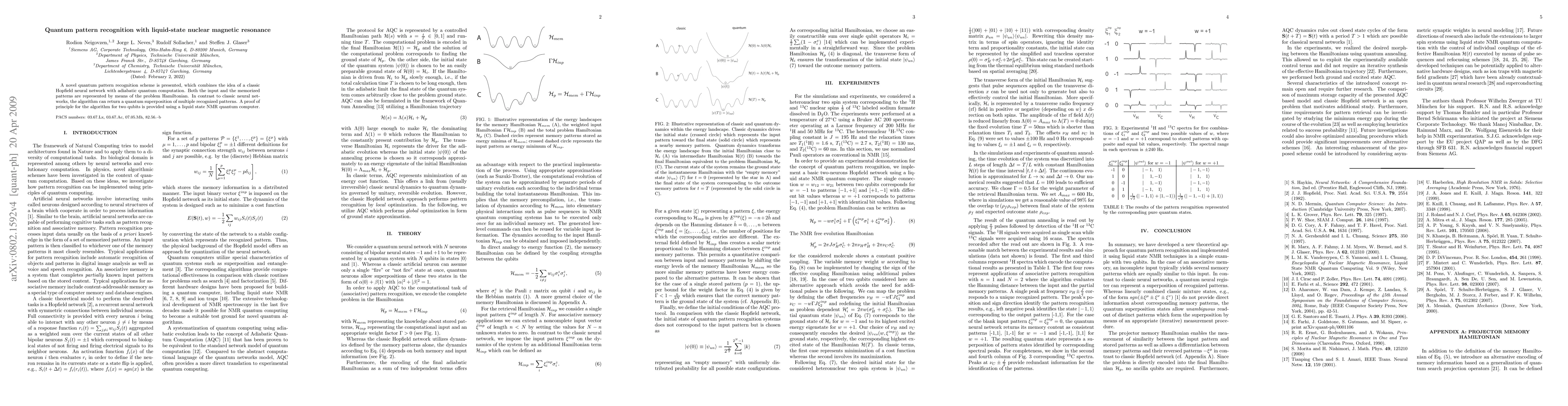 Researchers develop a quantum pattern recognition scheme that uses adiabatic quantum computation to recognize patterns, enabling multiple recognized patterns in a superposition state.