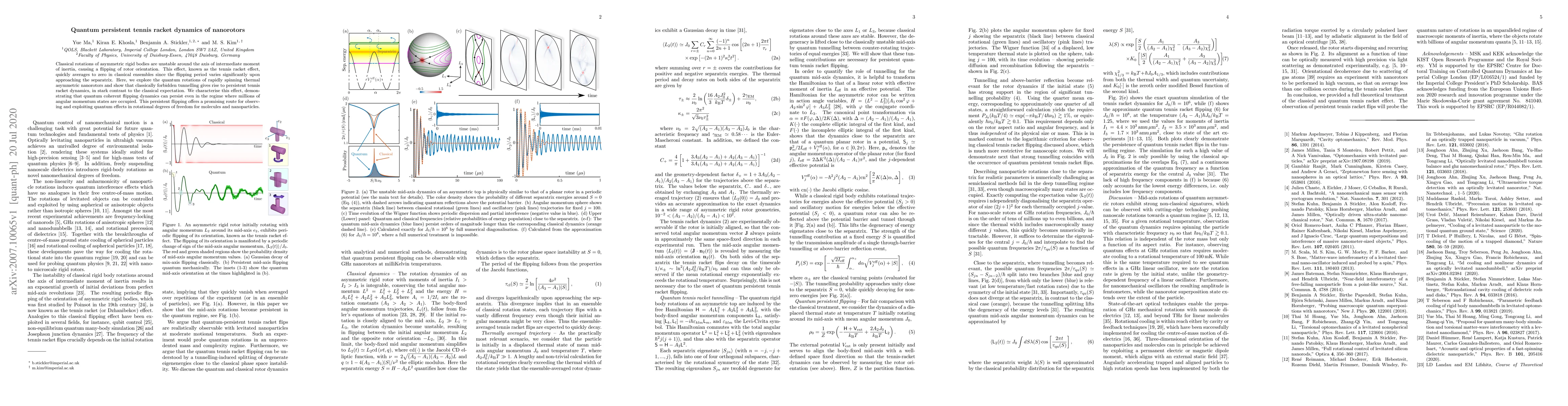 The research explores quantum rotations of rapidly spinning asymmetric nanorotors, revealing that quantum tunneling causes persistent 'tennis racket' dynamics, contrary to classical expectations. This phenomenon, observable even with millions of angular momentum states occupied, offers potential for studying quantum effects in molecular and nanoparticle rotations.