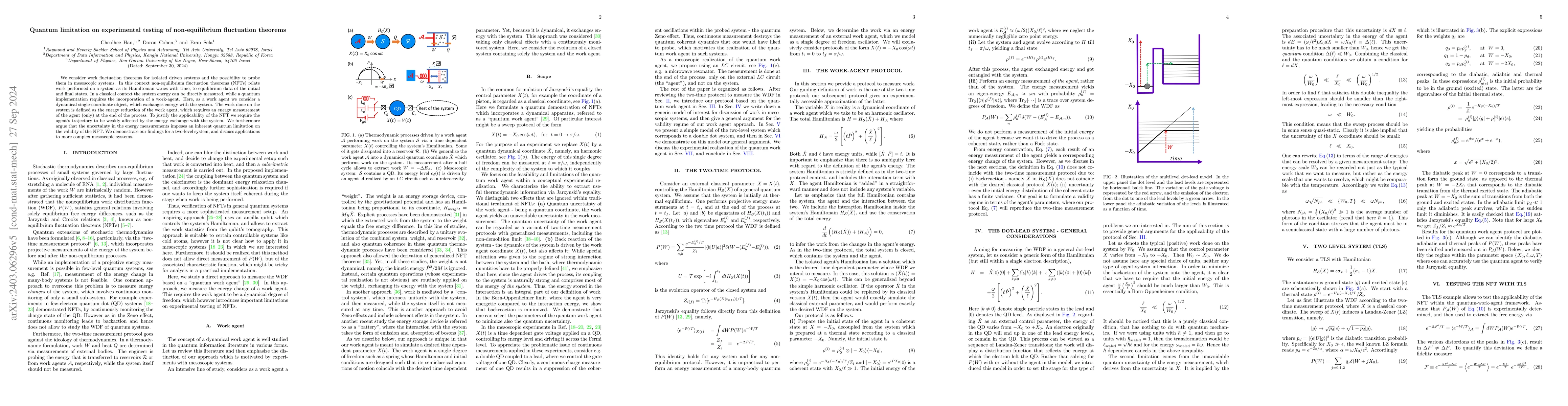 This paper introduces a quantum work agent to extend the testing of non-equilibrium fluctuation theorems to general quantum systems, proposing a model within mesoscopic systems for practical applications. It highlights the potential for probing these relations in more complex quantum systems beyond classical or simple quantum systems.