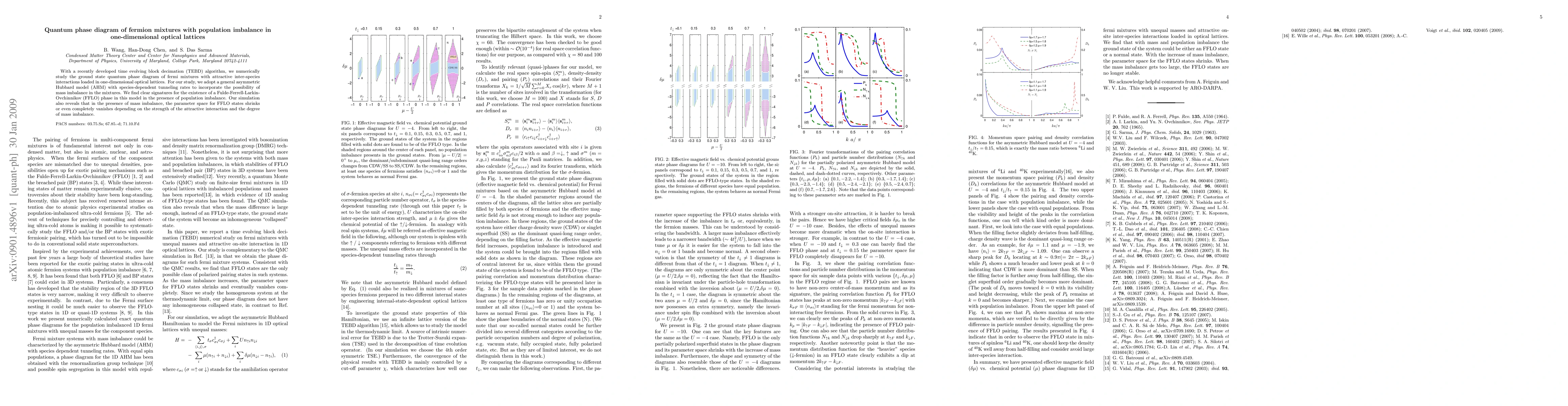 This paper uses a TEBD algorithm to study the quantum phase diagram of fermion mixtures in one-dimensional optical lattices, revealing the existence of a FFLO phase in the presence of population imbalance. The study shows that mass imbalance can shrink or eliminate the parameter space for FFLO states based on interaction strength and imbalance degree.