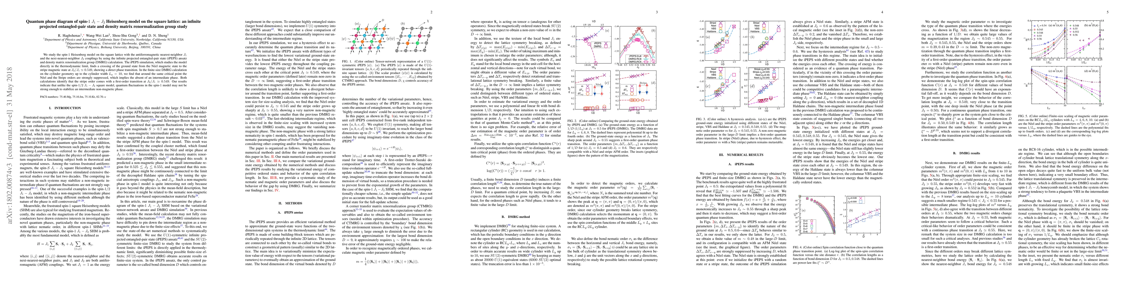 This paper investigates the quantum phase diagram of the spin-1 Heisenberg model on a square lattice using iPEPS and DMRG methods. It finds a direct phase transition from the N\'eel to the stripe magnetic state at $J_2/J_1 \simeq 0.549$, with no significant intermediate phase, suggesting stronger quantum fluctuations do not stabilize an intermediate non-magnetic phase in the spin-1 model compared to spin-1/2.