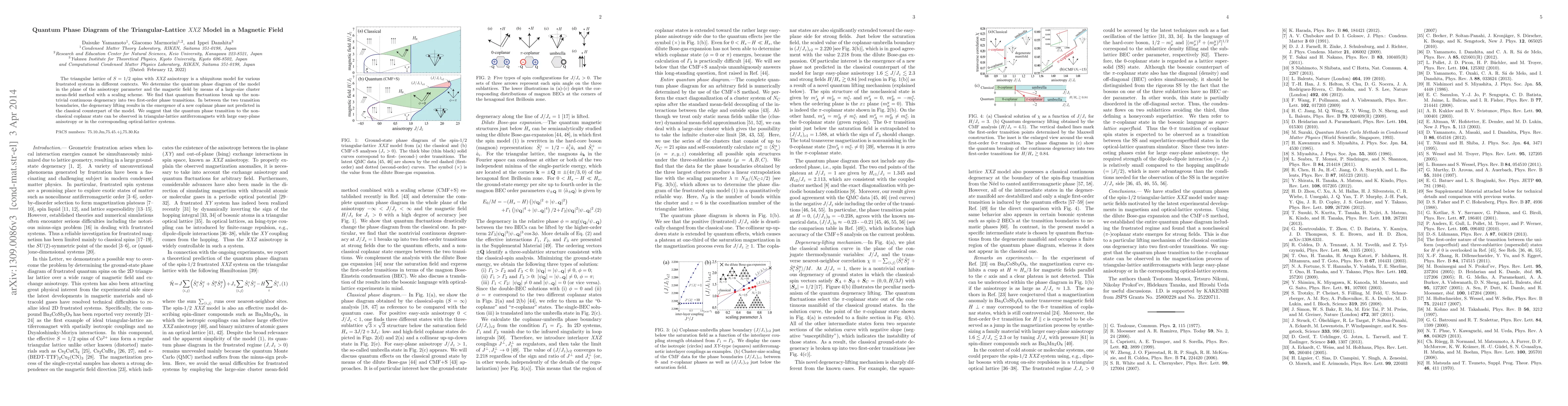The triangular lattice of S=1/2 spins with XXZ anisotropy is a ubiquitous model for various frustrated systems in different contexts. We determine the quantum phase diagram of the model in the plane of the anisotropy parameter and the magnetic field by means of a large-size cluster mean-field method with a scaling scheme. We find that quantum fluctuations break up the nontrivial continuous degeneracy into two first-order phase transitions. In between the two transition boundaries, the degeneracy lifting results in the emergence of a new coplanar phase not predicted in the classical counterpart of the model. We suggest that the quantum phase transition to the nonclassical coplanar state can be observed in triangular-lattice antiferromagnets with large easy-plane anisotropy or in the corresponding optical-lattice systems.