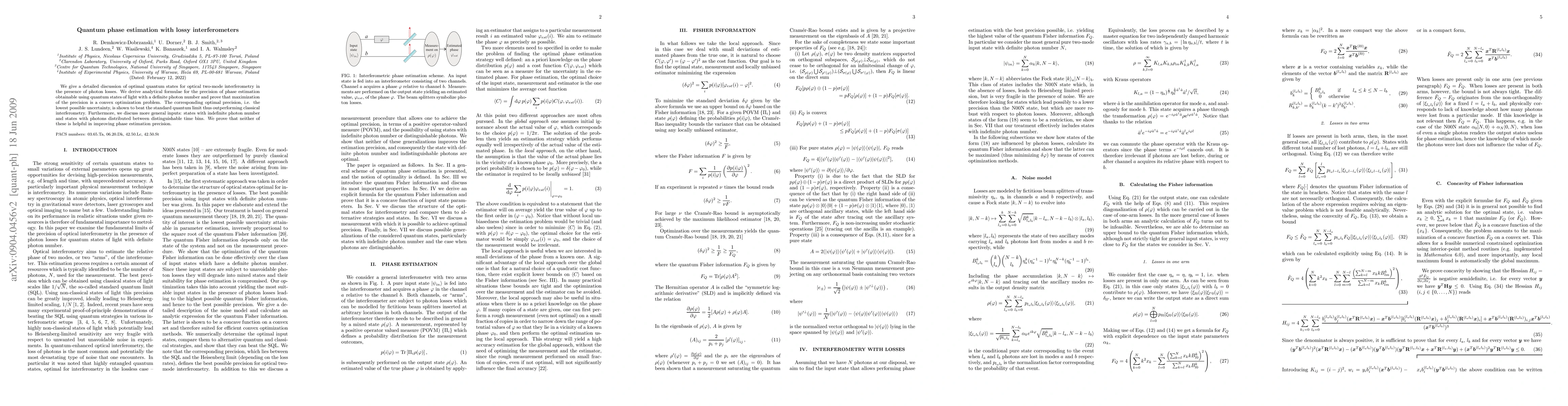 This paper explores optimal quantum states for phase estimation in lossy interferometers, deriving analytical expressions for precision and proving that definite photon number states achieve the lowest uncertainty, surpassing classical interferometry limits. It also examines states with indefinite photon numbers and distributed photons, concluding they do not enhance precision.