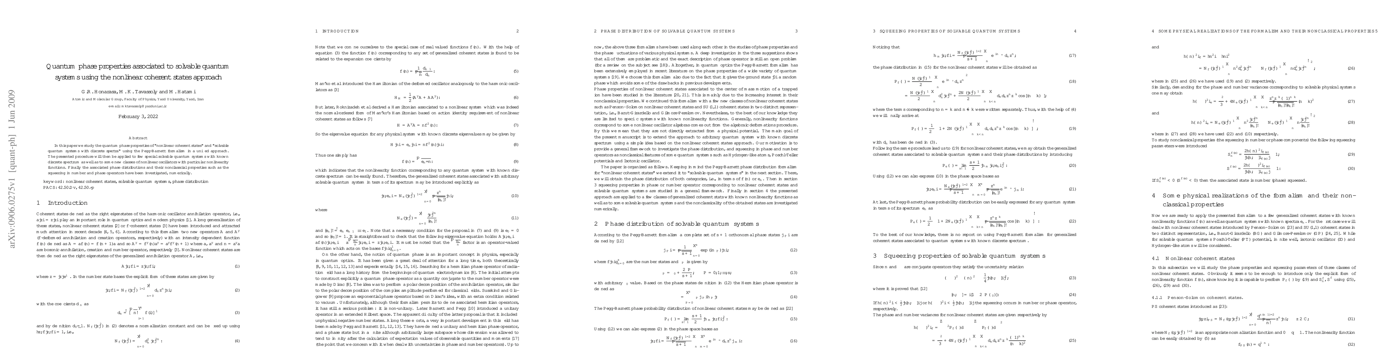 This paper investigates quantum phase properties of nonlinear coherent states and solvable quantum systems using the Pegg-Barnett formalism. It applies this approach to both known solvable systems and new classes of nonlinear oscillators, examining phase distributions and their nonclassical properties like squeezing.