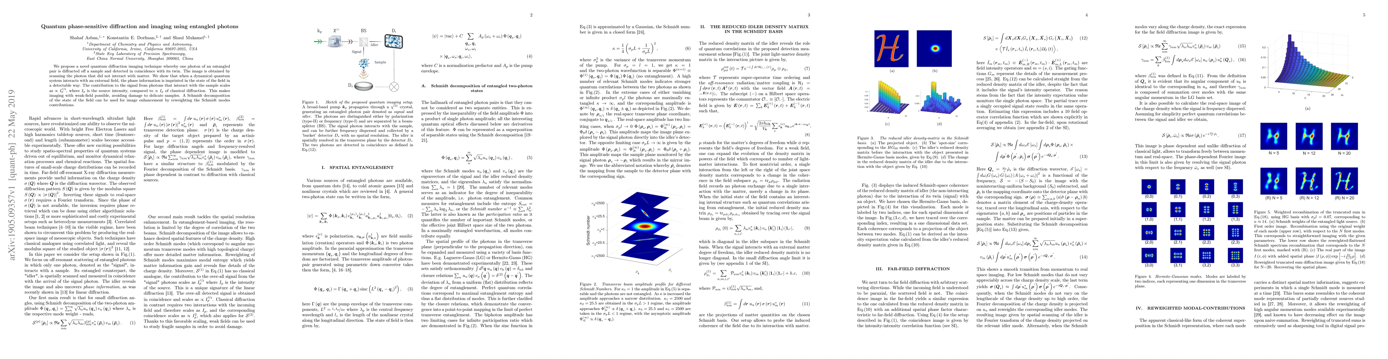 This paper introduces a novel quantum imaging technique using entangled photons, where phase-sensitive diffraction is achieved through detecting one photon of an entangled pair after interaction with a sample. The method enables imaging with weak fields, minimizing damage to delicate samples, and allows for image enhancement via Schmidt decomposition.