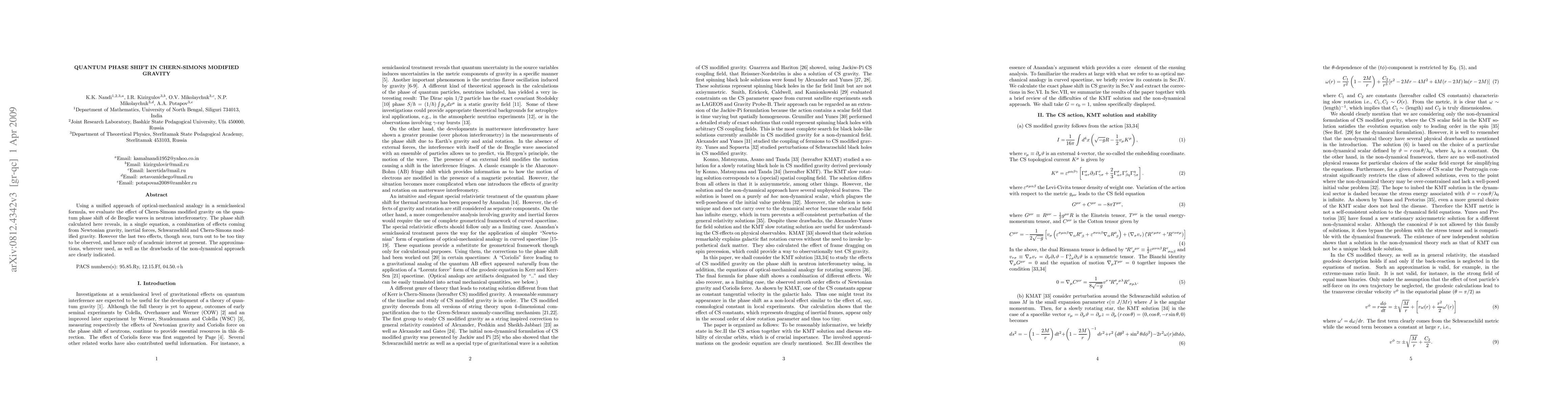 This paper assesses the quantum phase shift in neutron interferometry under Chern-Simons modified gravity, revealing effects from Newtonian gravity, inertial forces, and both Schwarzschild and Chern-Simons gravity. While the latter two effects are theoretically present, they are too small to observe, making them presently only of academic interest.