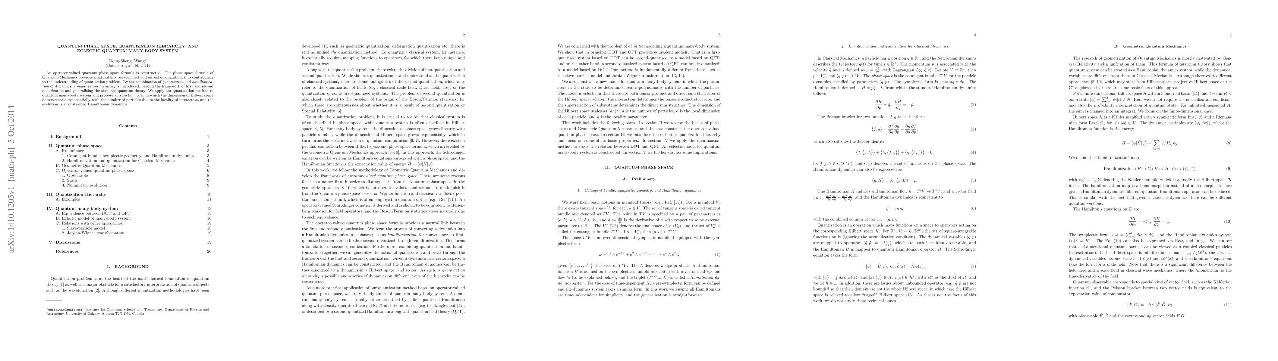 This paper constructs an operator-valued quantum phase space formula to bridge first and second quantization, introducing a quantization hierarchy that generalizes standard quantum theory. It applies this method to many-body systems, proposing an eclectic model where the Hilbert space dimension does not grow exponentially with particle number due to localized interactions.