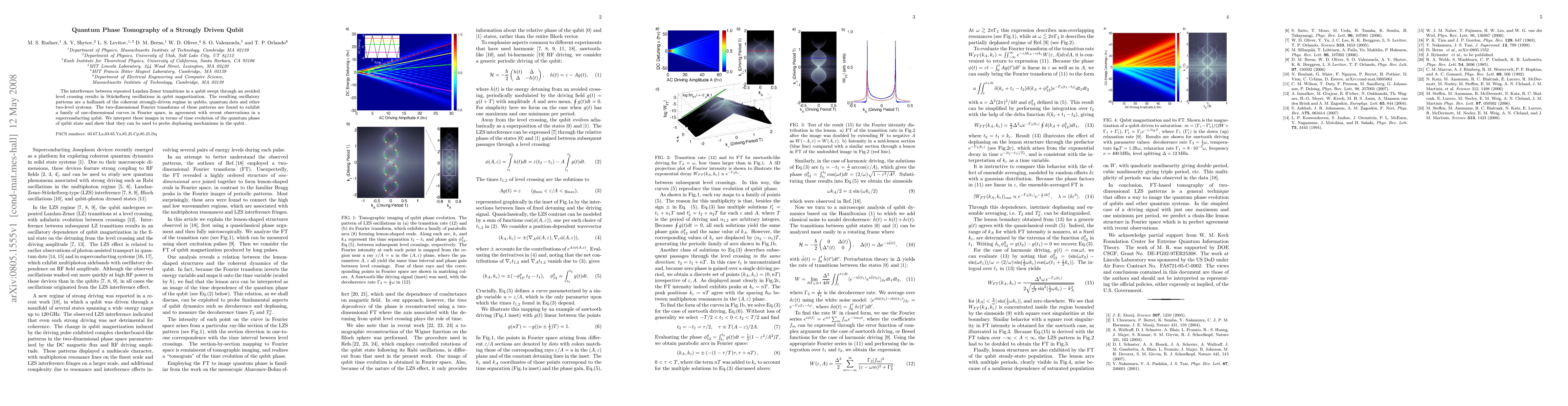 The interference between repeated Landau-Zener transitions in a qubit swept through an avoided level crossing results in Stueckelberg oscillations in qubit magnetization. The resulting oscillatory patterns are a hallmark of the coherent strongly-driven regime in qubits, quantum dots and other two-level systems. The two-dimensional Fourier transforms of these patterns are found to exhibit a family of one-dimensional curves in Fourier space, in agreement with recent observations in a superconducting qubit. We interpret these images in terms of time evolution of the quantum phase of qubit state and show that they can be used to probe dephasing mechanisms in the qubit.