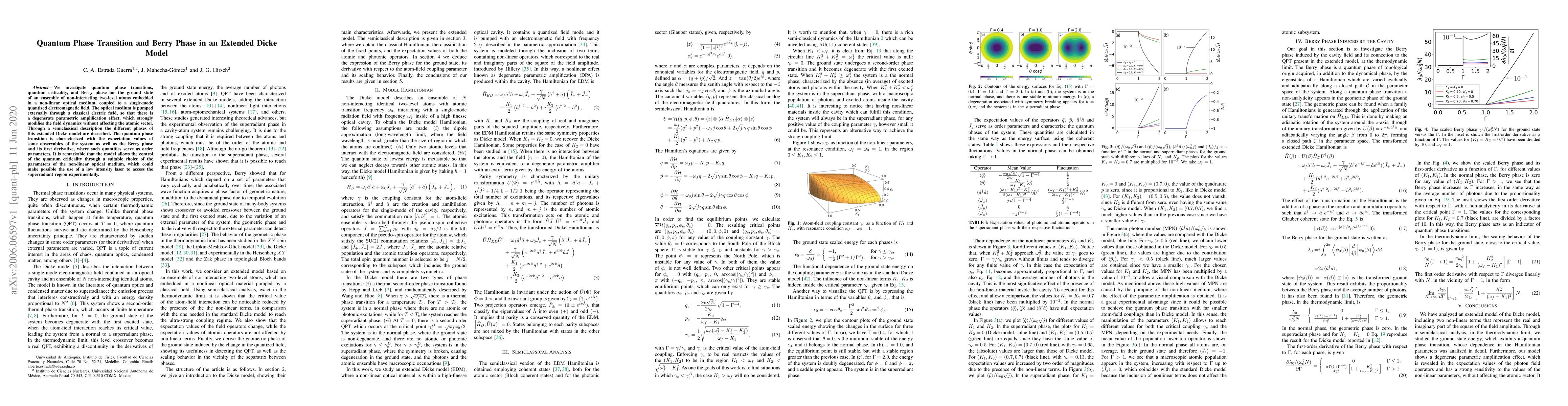 We investigate quantum phase transitions, quantum criticality, and Berry phase for the ground state of an ensemble of non-interacting two-level atoms embedded in a non-linear optical medium, coupled to a single-mode quantized electromagnetic field. The optical medium is pumped externally through a classical electric field, so that there is a degenerate parametric amplification effect, which strongly modifies the field dynamics without affecting the atomic sector. Through a semiclassical description the different phases of this extended Dicke model are described. The quantum phase transition is characterized with the expectation values of some observables of the system as well as the Berry phase and its first derivative, where such quantities serve as order parameters. It is remarkable that the model allows the control of the quantum criticality through a suitable choice of the parameters of the non-linear optical medium, which could make possible the use of a low intensity laser to access the superradiant region experimentally.