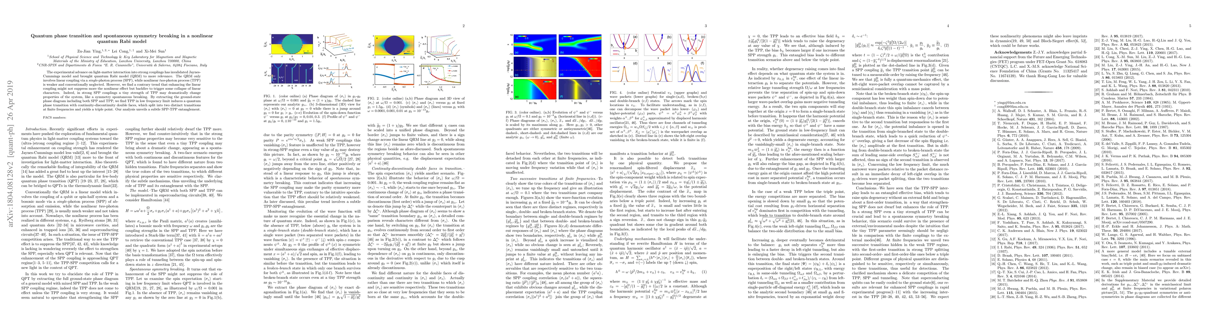 This paper investigates the quantum phase transition and spontaneous symmetry breaking in a nonlinear quantum Rabi model, revealing that a small nonlinear two-photon process can significantly alter system properties, including inducing a quantum phase transition. The study uncovers a complex interplay between single-photon and two-photon processes, leading to a triple point in the phase diagram.