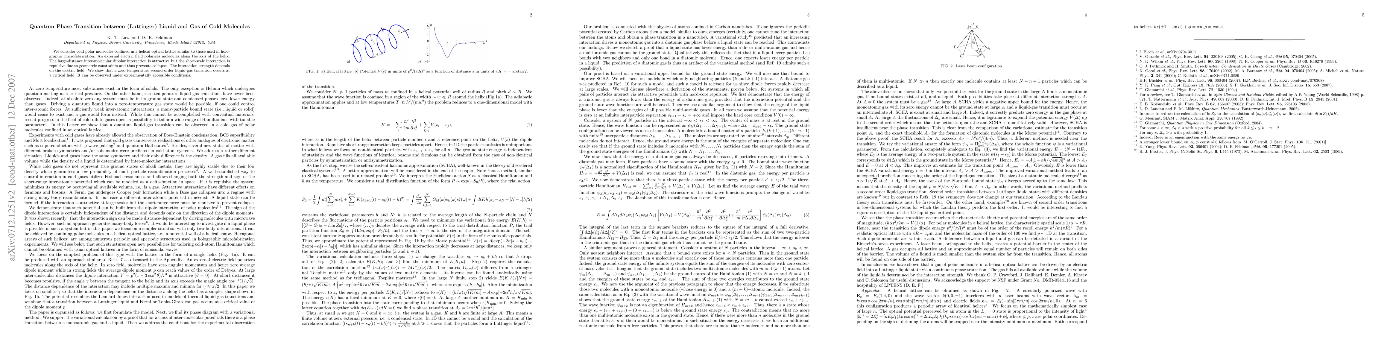 We consider cold polar molecules confined in a helical optical lattice similar to those used in holographic microfabrication. An external electric field polarizes molecules along the axis of the helix. The large-distance inter-molecular dipolar interaction is attractive but the short-scale interaction is repulsive due to geometric constraints and thus prevents collapse. The interaction strength depends on the electric field. We show that a zero-temperature second-order liquid-gas transition occurs at a critical field. It can be observed under experimentally accessible conditions.