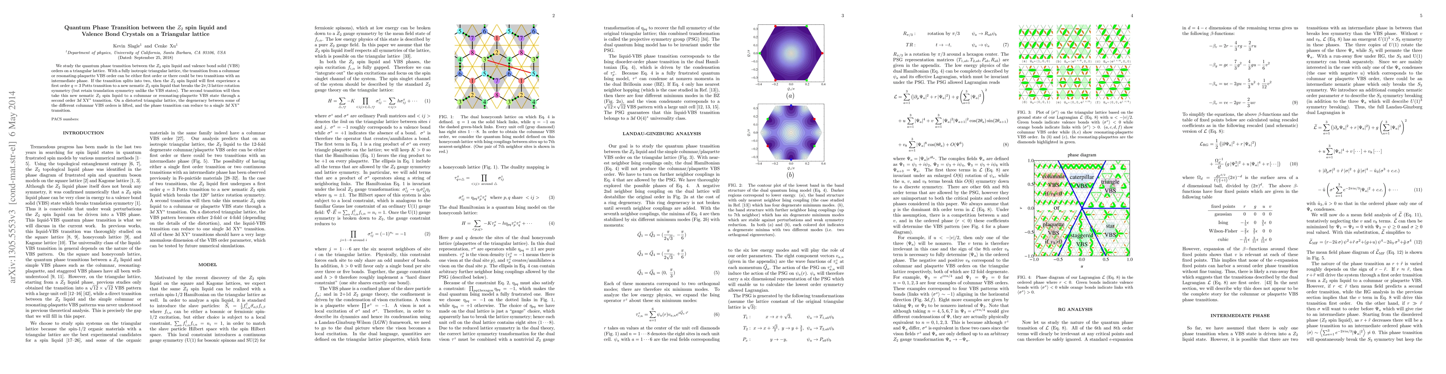 This paper investigates the quantum phase transition between $Z_2$ spin liquid and columnar valence bond crystal states on a triangular lattice. It finds that on an isotropic lattice, the transition may involve a first-order Potts transition followed by a second-order XY$^*$ transition, while on a distorted lattice, it simplifies to a single XY$^*$ transition.