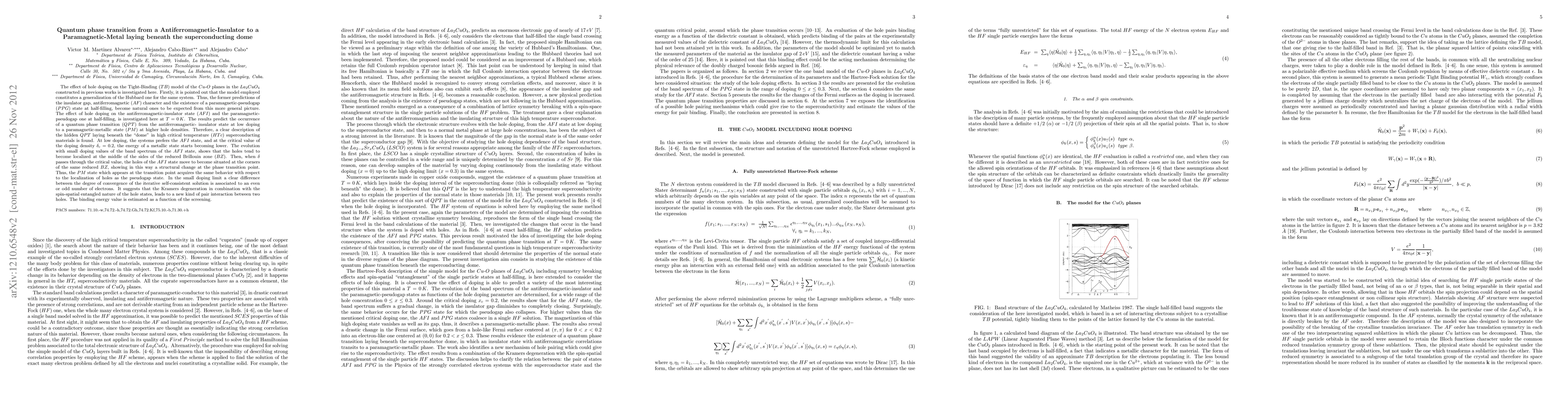 This research investigates the quantum phase transition in doped La2CuO4 CuO planes, revealing a transition from an antiferromagnetic-insulator to a paramagnetic-metal state as hole doping increases. The study finds that at a critical doping density of 0.2, the system undergoes a quantum phase transition from the antiferromagnetic-insulator state to the metallic state, with a structural change in hole localization within the Brillouin zone.