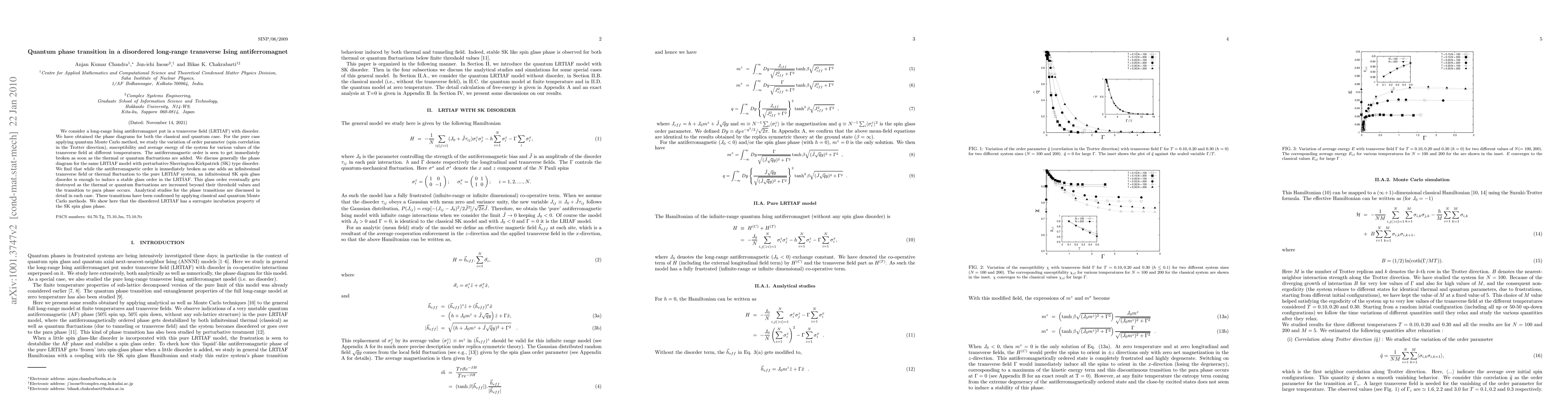This paper investigates quantum phase transitions in a disordered long-range transverse Ising antiferromagnet (LRTIAF) and finds that while thermal or quantum fluctuations break antiferromagnetic order, a small amount of disorder induces a stable spin glass phase. The transition to a para phase is confirmed through classical and quantum Monte Carlo simulations.