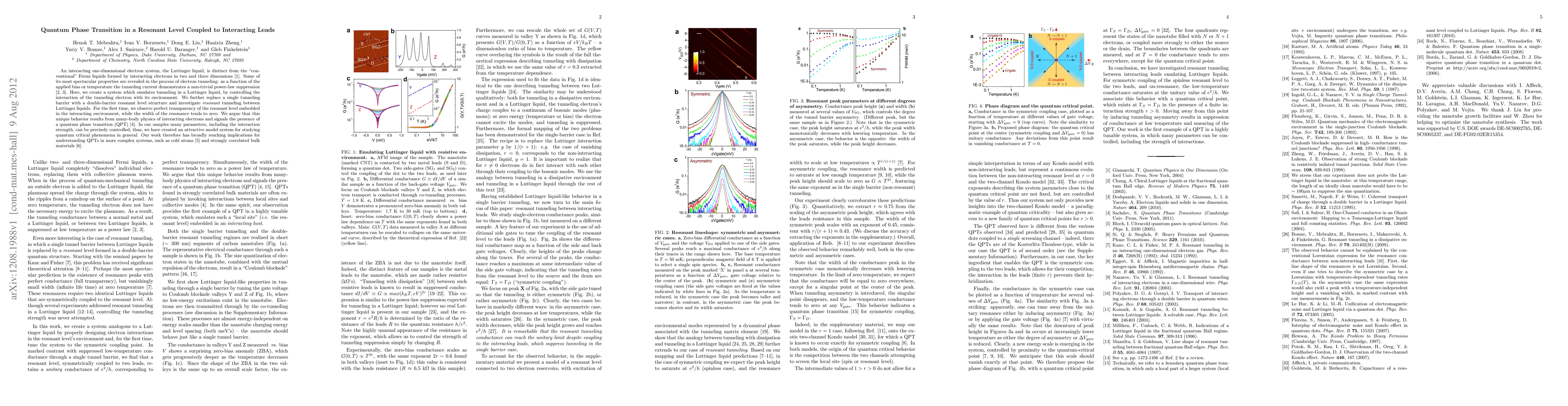 An interacting one-dimensional electron system, the Luttinger liquid, is distinct from the "conventional" Fermi liquids formed by interacting electrons in two and three dimensions. Some of its most spectacular properties are revealed in the process of electron tunneling: as a function of the applied bias or temperature the tunneling current demonstrates a non-trivial power-law suppression. Here, we create a system which emulates tunneling in a Luttinger liquid, by controlling the interaction of the tunneling electron with its environment. We further replace a single tunneling barrier with a double-barrier resonant level structure and investigate resonant tunneling between Luttinger liquids. For the first time, we observe perfect transparency of the resonant level embedded in the interacting environment, while the width of the resonance tends to zero. We argue that this unique behavior results from many-body physics of interacting electrons and signals the presence of a quantum phase transition (QPT). In our samples many parameters, including the interaction strength, can be precisely controlled; thus, we have created an attractive model system for studying quantum critical phenomena in general. Our work therefore has broadly reaching implications for understanding QPTs in more complex systems, such as cold atoms and strongly correlated bulk materials.