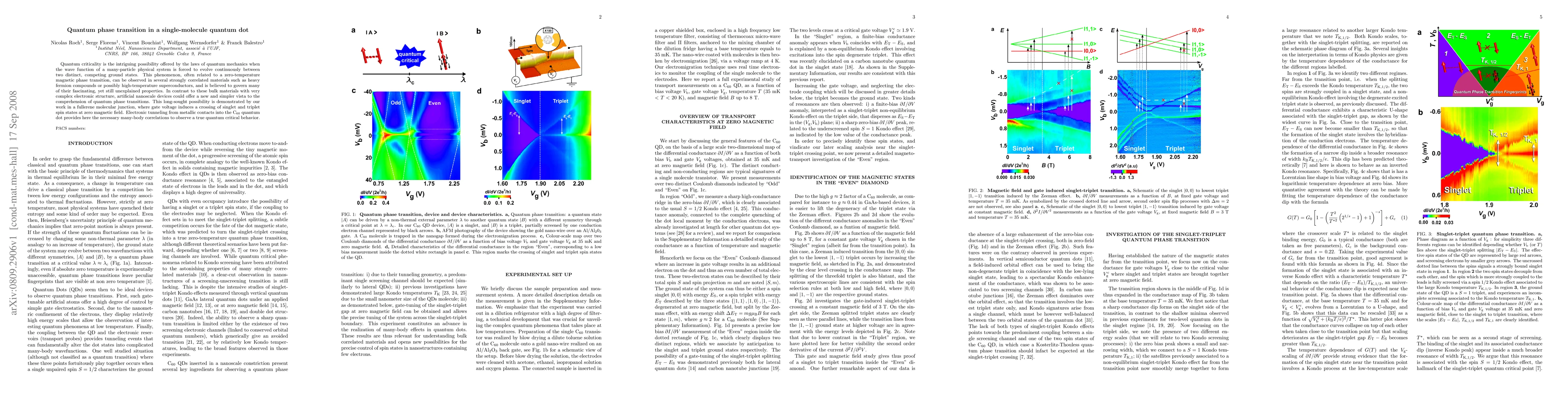 Researchers demonstrate a quantum phase transition in a single-molecule quantum dot, where gate voltage induces a crossing of singlet and triplet spin states at zero magnetic field. This discovery offers a new perspective on understanding quantum criticality in simple nanoscale devices.