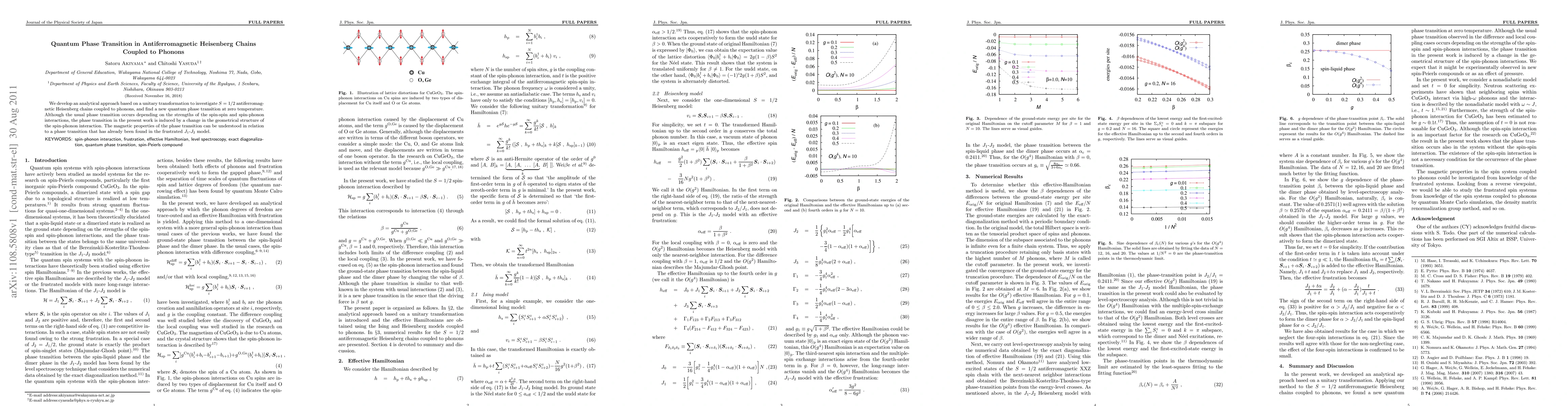 This paper investigates S=1/2 antiferromagnetic Heisenberg chains coupled to phonons, revealing a new quantum phase transition at zero temperature induced by a change in the geometrical structure of the spin-phonon interaction, akin to transitions found in the frustrated J1-J2 model. The study employs an analytical approach based on a unitary transformation to uncover these magnetic properties.