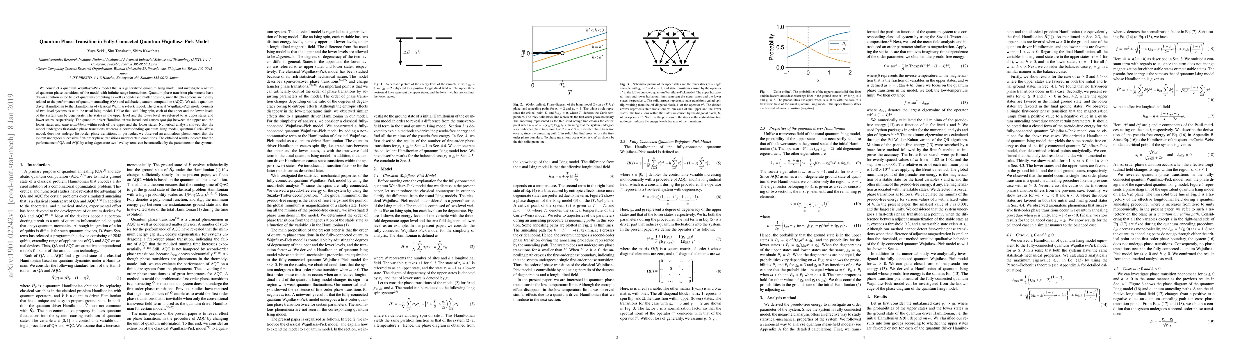 This paper constructs a generalized quantum Wajnflasz-Pick model, exploring its quantum phase transitions with infinite-range interactions. The model, enhanced by a quantum driver Hamiltonian, exhibits first-order phase transitions and successive transitions under certain conditions, suggesting control over quantum annealing and adiabatic quantum computation performance.