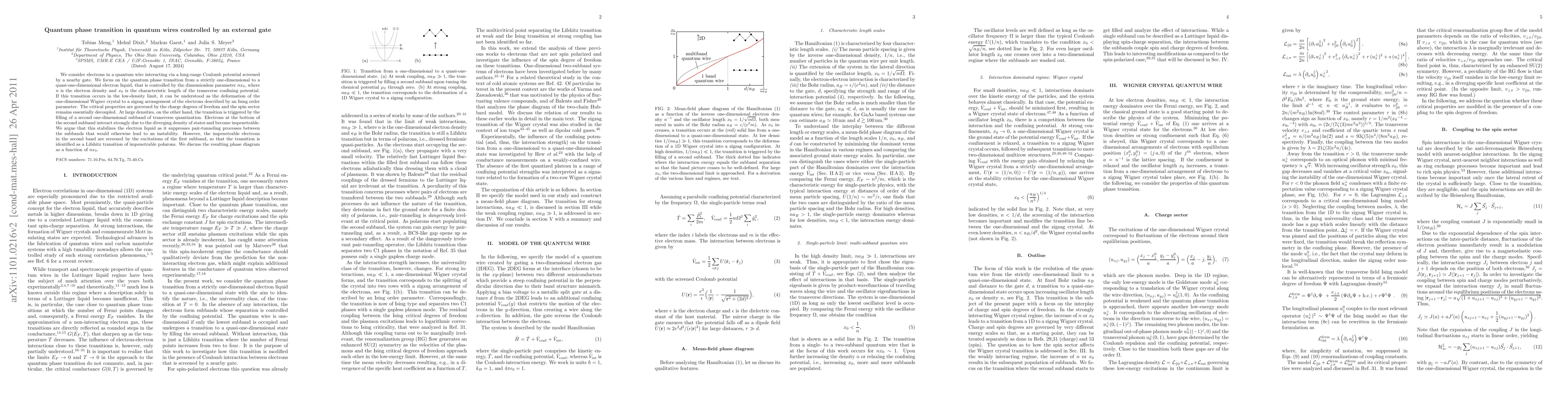 Researchers study a quantum phase transition in quantum wires controlled by an external gate, finding that it occurs at two different density limits and is governed by the interplay between electrons and excitations.