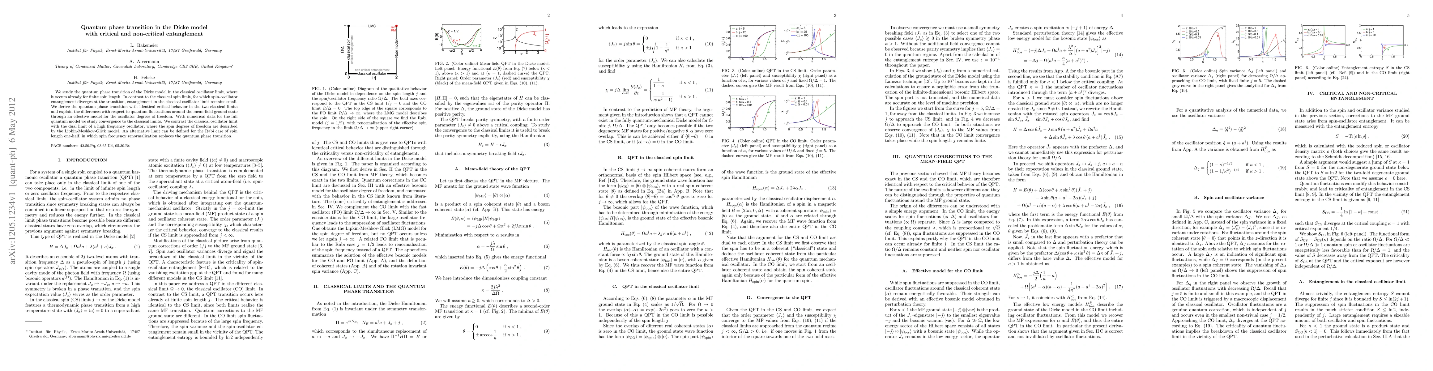 This paper investigates the quantum phase transition in the Dicke model, focusing on entanglement differences in the classical oscillator limit versus the classical spin limit. The study reveals identical critical behavior in both classical limits, contrasting with quantum fluctuations, and explores alternative limits including the Lipkin-Meshkov-Glick model and spin frequency renormalization in the Rabi case.
