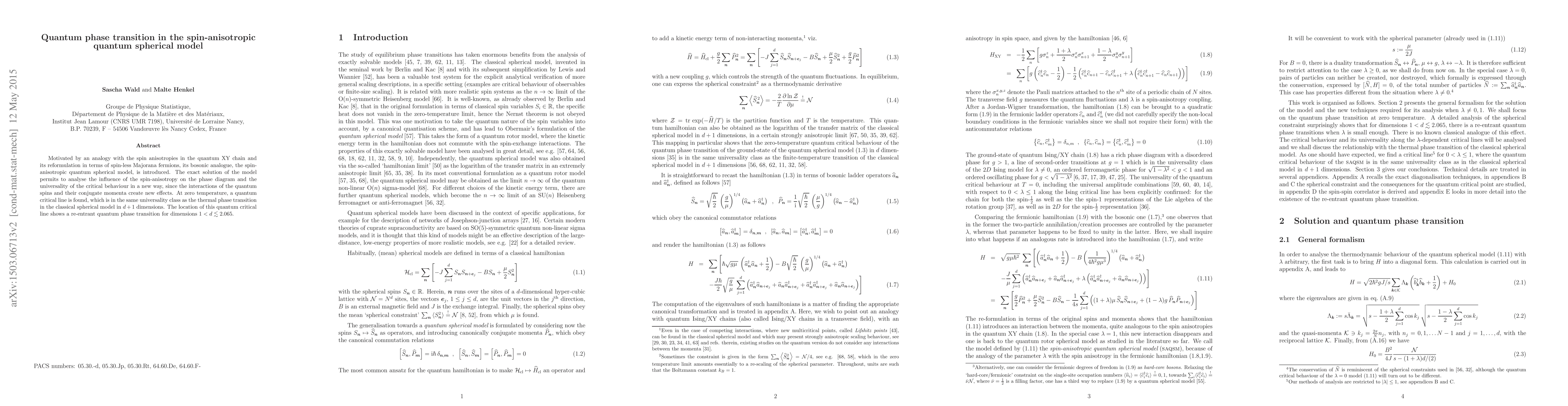 analogue, the spin-anisotropic quantum spherical model, is introduced. The
