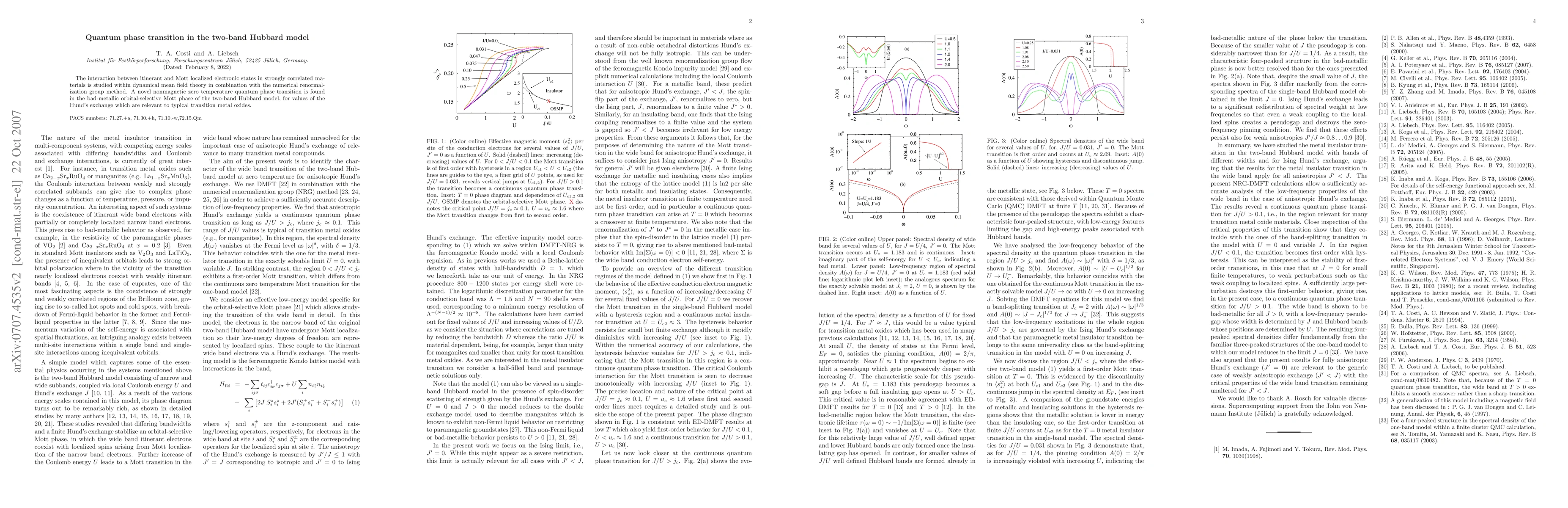 The interaction between itinerant and Mott localized electronic states in strongly correlated materials is studied within dynamical mean field theory in combination with the numerical renormalization group method. A novel nonmagnetic zero temperature quantum phase transition is found in the bad-metallic orbital-selective Mott phase of the two-band Hubbard model, for values of the Hund's exchange which are relevant to typical transition metal oxides.