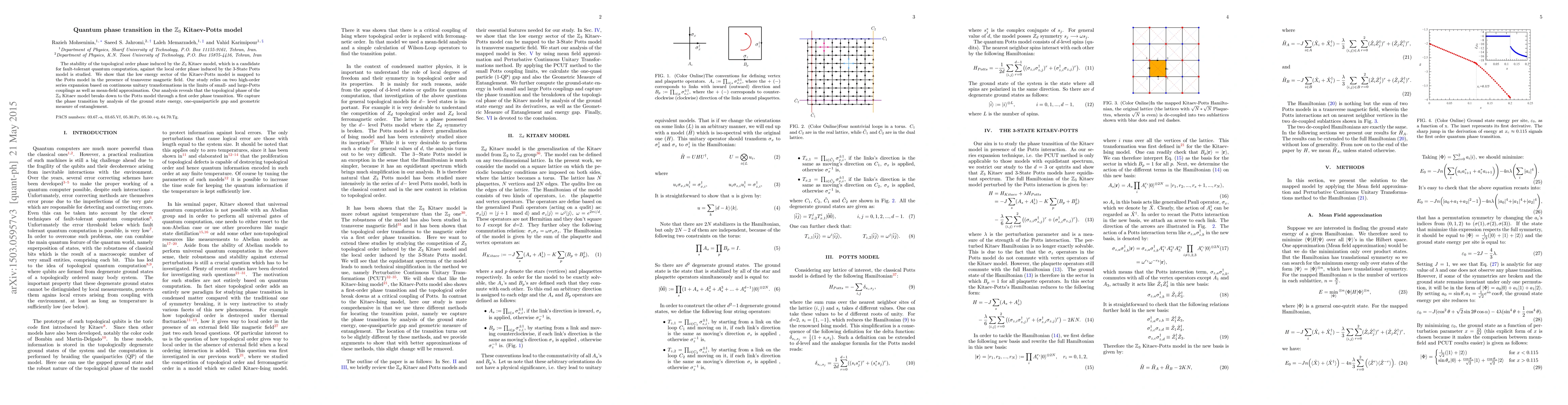 This paper investigates the quantum phase transition between the topological order phase of the $Z_3$ Kitaev model and the local order phase of the 3-State Potts model, revealing a first-order transition through series expansion and mean-field approximation. The study identifies the transition via ground state energy, quasiparticle gap, and entanglement measures.