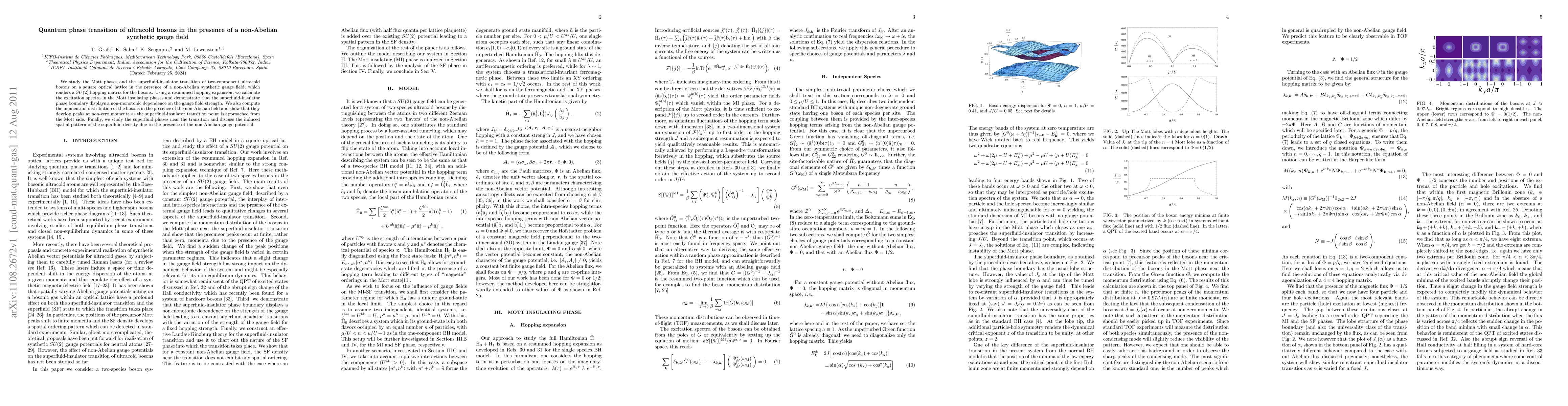 This paper investigates the quantum phase transition of ultracold bosons in a square optical lattice with a non-Abelian synthetic gauge field, revealing a non-monotonic superfluid-insulator phase boundary and momentum distribution peaks near the transition. The study also explores the spatial pattern of superfluid density influenced by the non-Abelian gauge potential.