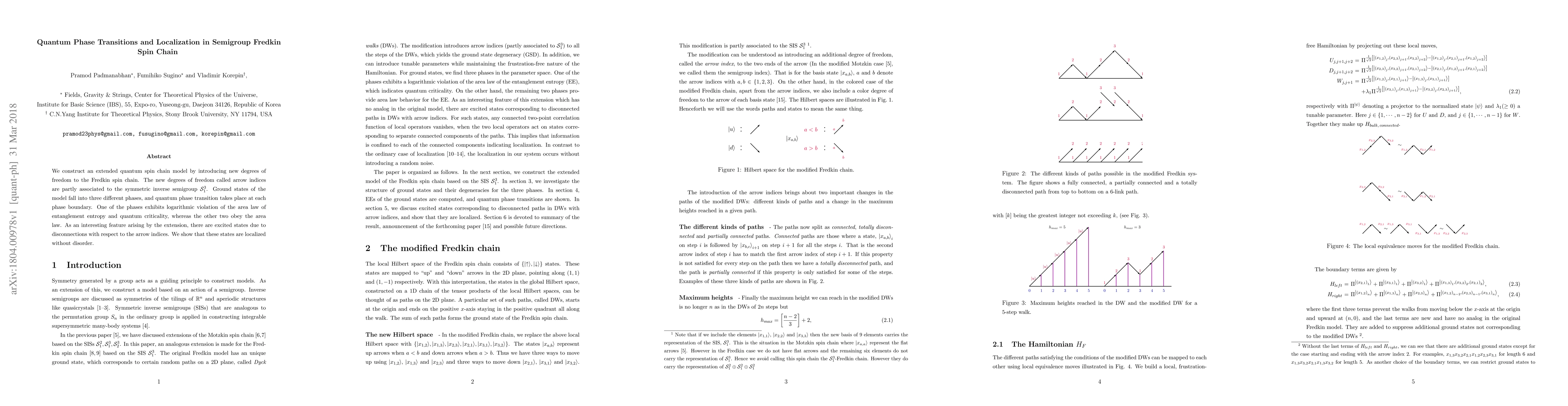We construct an extended quantum spin chain model by introducing new degrees of freedom to the Fredkin spin chain. The new degrees of freedom called arrow indices are partly associated to the symmetric inverse semigroup $\cS^3_1$. Ground states of the model fall into three different phases, and quantum phase transition takes place at each phase boundary. One of the phases exhibits logarithmic violation of the area law of entanglement entropy and quantum criticality, whereas the other two obey the area law. As an interesting feature arising by the extension, there are excited states due to disconnections with respect to the arrow indices. We show that these states are localized without disorder.