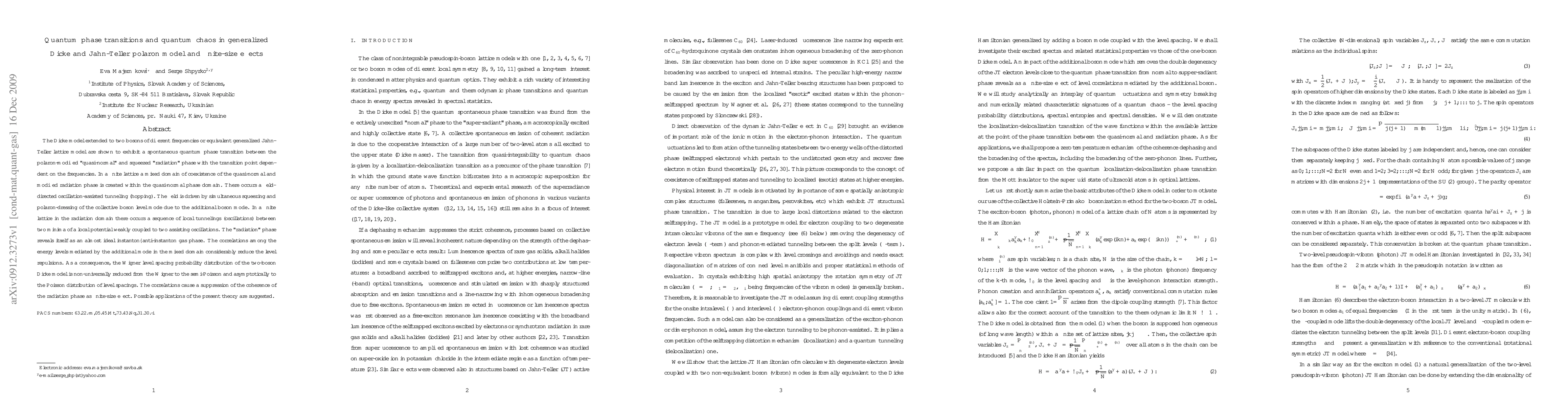 The Dicke model extended to two bosons of different frequencies or equivalent generalized Jahn-Teller lattice model are shown to exhibit a spontaneous quantum phase transition between the polaron-modified "quasi-normal" and squeezed "radiation" phase with the transition point dependent on the frequencies. In a finite lattice a mixed domain of coexistence of the quasi-normal and modified radiation phase is created within the quasi-normal phase domain. There occurs a field-directed oscillation-assisted tunneling (hopping). The field is driven by simultaneous squeezing and polaron-dressing of the collective boson level mode due to the additional boson mode. In a finite lattice in the radiation domain there occurs a sequence of local tunnelings (oscillations) between two minima of a local potential weakly coupled to two assisting oscillations. The "radiation" phase reveals itself as an almost ideal instanton--anti-instanton gas phase. The correlations among the energy levels mediated by the additional mode in the mixed domain considerably reduce the level repulsions. As a consequence, the Wigner level spacing probability distribution of the two-boson Dicke model is non-universally reduced from the Wigner to the semi-Poisson and asymptotically to the Poisson distribution of level spacings. The correlations cause a suppression of the coherence of the radiation phase as finite-size effect. Possible applications of the present theory are suggested.