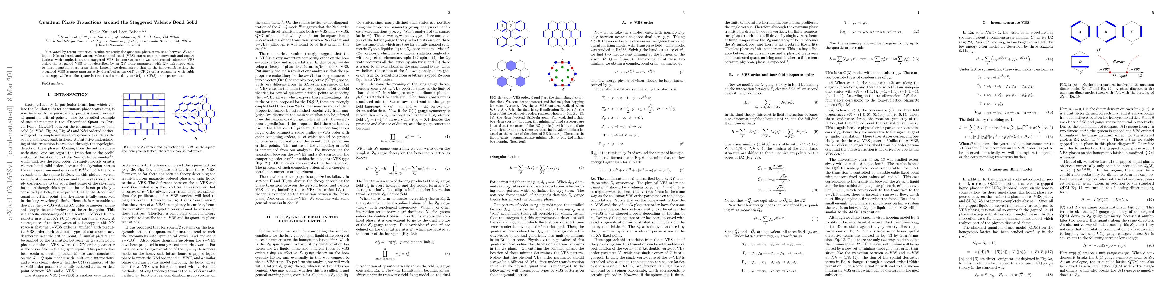 Motivated by recent numerical results, we study the quantum phase transitions between Z_2 spin liquid, Neel ordered, and various valence bond solid (VBS) states on the honeycomb and square lattices, with emphasis on the staggered VBS. In contrast to the well-understood columnar VBS order, the staggered VBS is not described by an XY order parameter with Z_N anisotropy close to these quantum phase transitions. Instead, we demonstrate that on the honeycomb lattice, the staggered VBS is more appropriately described as an O(3) or CP(2) order parameter with cubic anisotropy, while on the square lattice it is described by an O(4) or CP(3) order parameter.