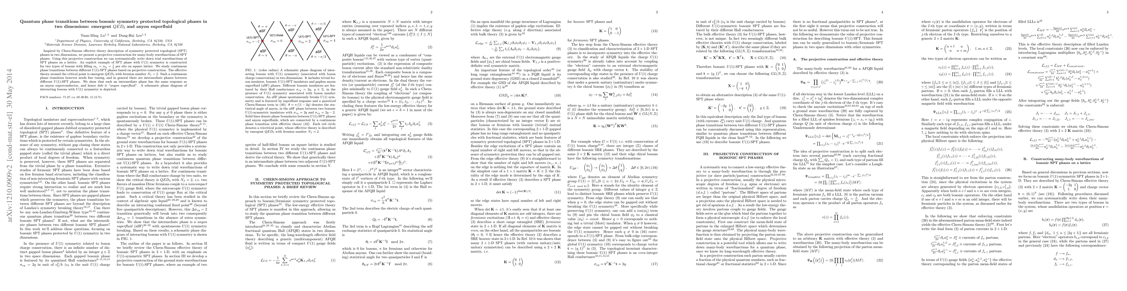 This paper constructs projective wavefunctions for symmetry protected topological (SPT) phases in two dimensions, demonstrating continuous phase transitions between these phases. The critical point exhibits an emergent $QED_3$ with $N_f=2$ fermions, and an intermediate phase behaves like an "anyon superfluid."