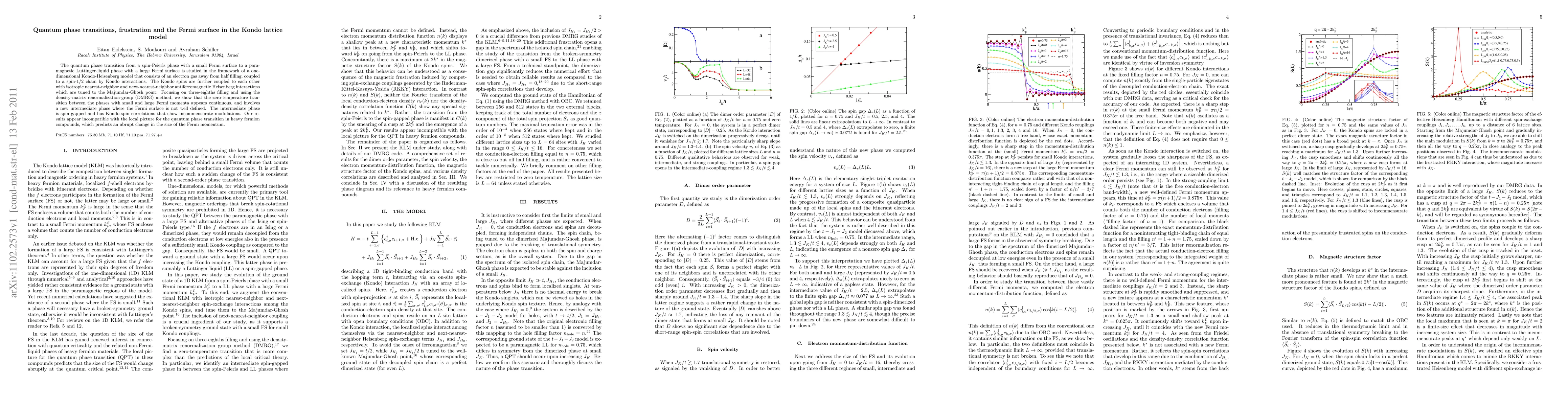 The quantum phase transition from a spin-Peierls phase with a small Fermi surface to a paramagnetic Luttinger-liquid phase with a large Fermi surface is studied in the framework of a one-dimensional Kondo-Heisenberg model that consists of an electron gas away from half filling, coupled to a spin-1/2 chain by Kondo interactions. The Kondo spins are further coupled to each other with isotropic nearest-neighbor and next-nearest-neighbor antiferromagnetic Heisenberg interactions which are tuned to the Majumdar-Ghosh point. Focusing on three-eighths filling and using the density-matrix renormalization-group (DMRG) method, we show that the zero-temperature transition between the phases with small and large Fermi momenta appears continuous, and involves a new intermediate phase where the Fermi surface is not well defined. The intermediate phase is spin gapped and has Kondo-spin correlations that show incommensurate modulations. Our results appear incompatible with the local picture for the quantum phase transition in heavy fermion compounds, which predicts an abrupt change in the size of the Fermi momentum.