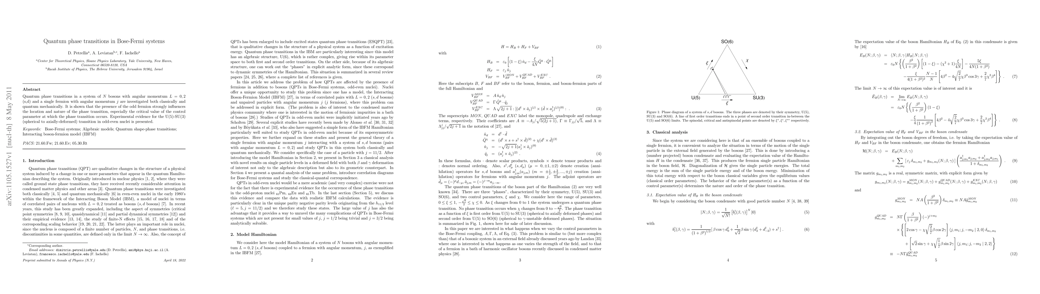 Quantum phase transitions in a system of N bosons with angular momentum L=0,2 (s,d) and a single fermion with angular momentum j are investigated both classically and quantum mechanically. It is shown that the presence of the odd fermion strongly influences the location and nature of the phase transition, especially the critical value of the control parameter at which the phase transition occurs. Experimental evidence for the U(5)-SU(3) (spherical to axially-deformed) transition in odd-even nuclei is presented.