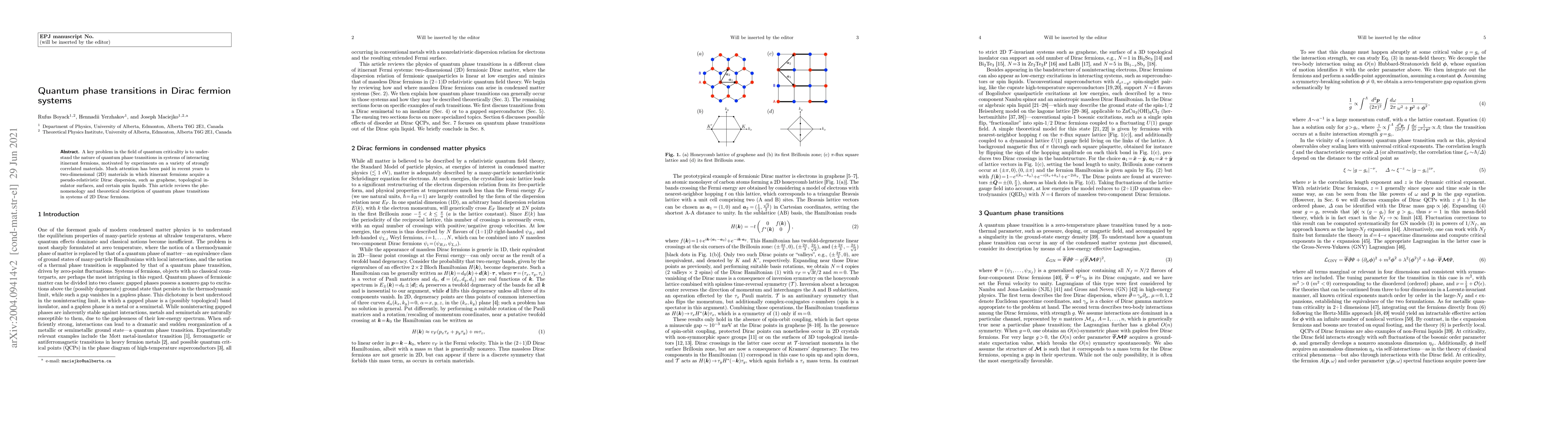 This paper reviews the phenomenology and theoretical framework for understanding quantum phase transitions in two-dimensional Dirac fermion systems, focusing on materials like graphene and topological insulators where these fermions exhibit pseudo-relativistic behavior.