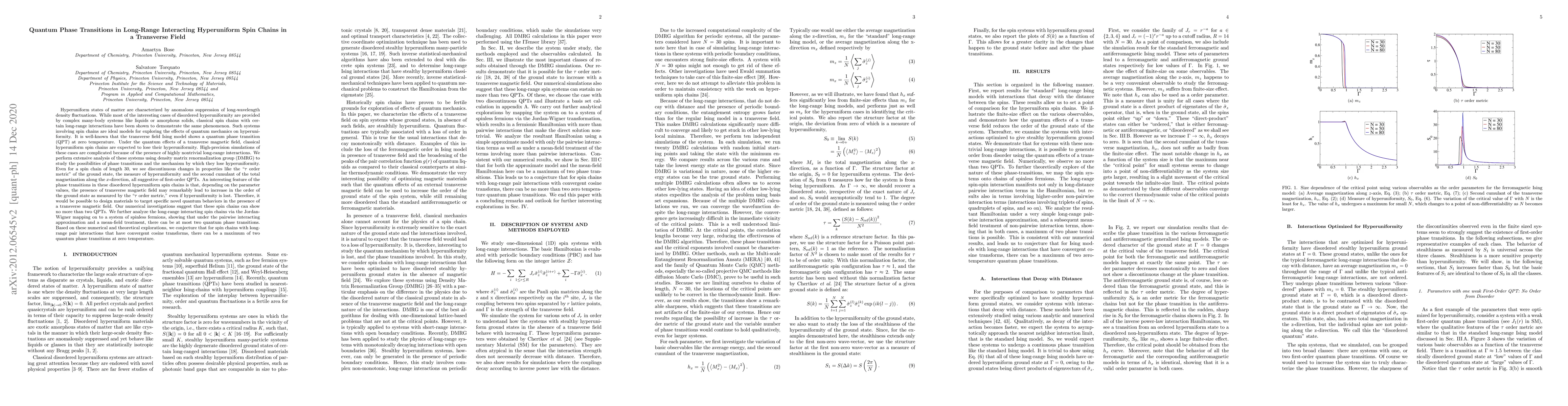 This paper investigates quantum phase transitions in long-range interacting spin chains under a transverse field, revealing first-order quantum phase transitions and the loss of hyperuniformity. Interestingly, despite losing hyperuniformity, the system may exhibit increased order, suggesting potential for designing novel quantum behaviors.