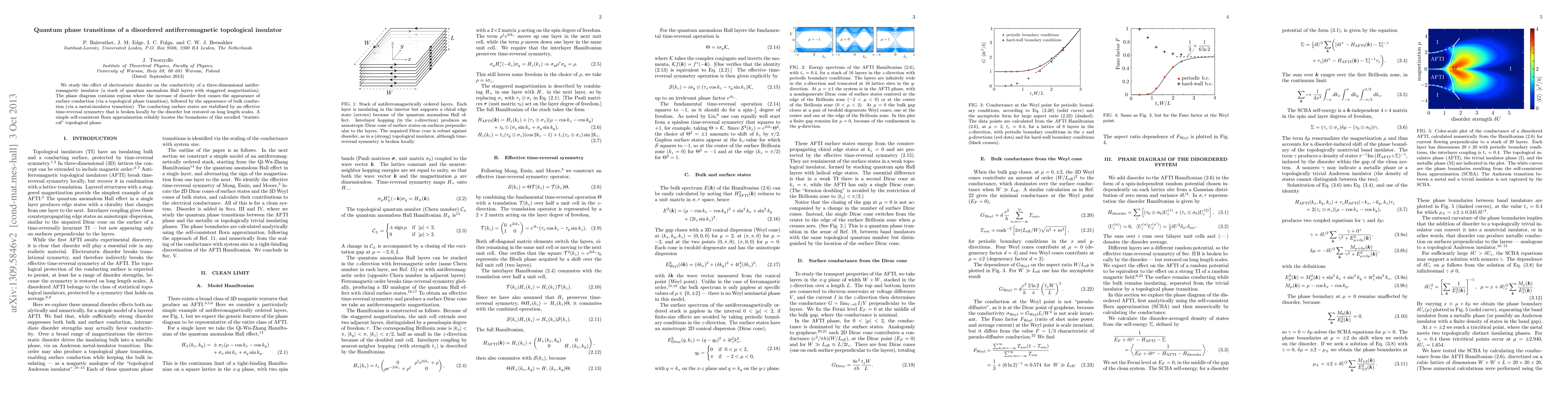We study the effect of electrostatic disorder on the conductivity of a three-dimensional antiferromagnetic insulator (a stack of quantum anomalous Hall layers with staggered magnetization). The phase diagram contains regions where the increase of disorder first causes the appearance of surface conduction (via a topological phase transition), followed by the appearance of bulk conduction (via a metal-insulator transition). The conducting surface states are stabilized by an effective time-reversal symmetry that is broken locally by the disorder but restored on long length scales. A simple self-consistent Born approximation reliably locates the boundaries of this socalled "statistical" topological phase.