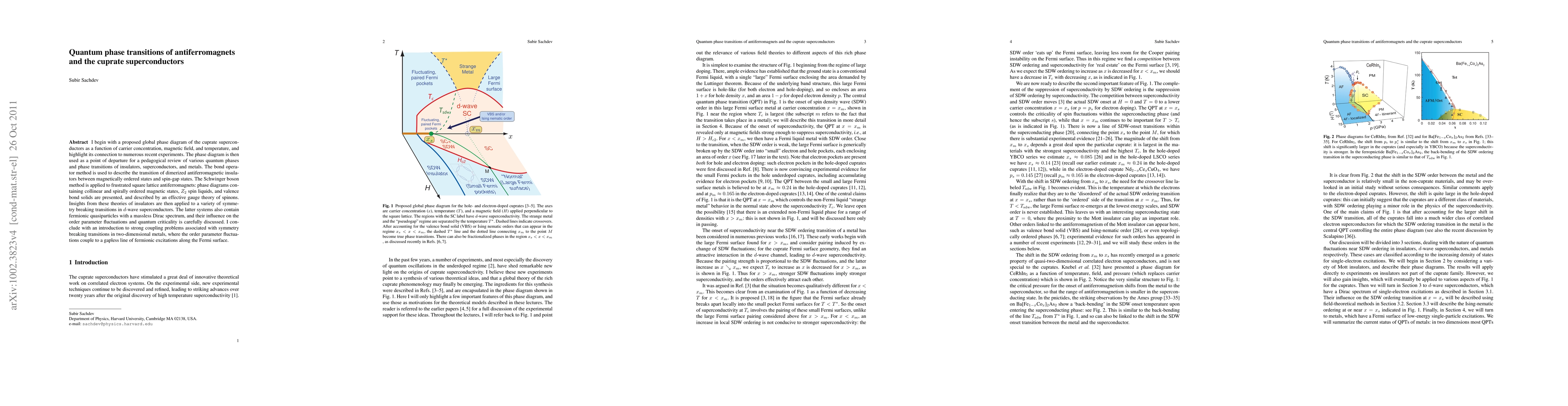 This paper presents a global phase diagram of cuprate superconductors, connecting it to recent experiments, and uses it to review quantum phase transitions in insulators, superconductors, and metals. It explores the bond operator and Schwinger boson methods for antiferromagnetic systems, applying insights to d-wave superconductors and discussing their quantum criticality.