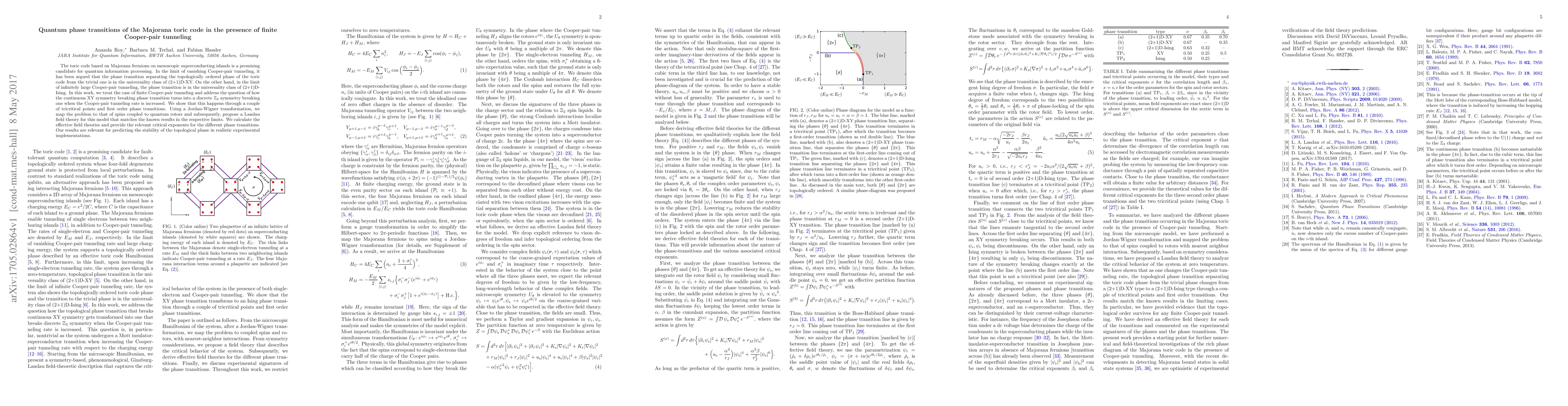 The toric code based on Majorana fermions on mesoscopic superconducting islands is a promising candidate for quantum information processing. In the limit of vanishing Cooper-pair tunneling, it has been argued that the phase transition separating the topologically ordered phase of the toric code from the trivial one is in the universality class of (2+1)D-XY. On the other hand, in the limit of infinitely large Cooper-pair tunneling, the phase transition is in the universality class of (2+1)D-Ising. In this work, we treat the case of finite Cooper-pair tunneling and address the question of how the continuous XY symmetry breaking phase transition turns into a discrete $\mathbb{Z}_2$ symmetry breaking one when the Cooper-pair tunneling rate is increased. We show that this happens through a couple of tricritical points and first order phase transitions. Using a Jordan-Wigner transformation, we map the problem to that of spins coupled to quantum rotors and subsequently, propose a Landau field theory for this model that matches the known results in the respective limits. We calculate the effective field theories and provide the relevant critical exponents for the different phase transitions. Our results are relevant for predicting the stability of the topological phase in realistic experimental implementations.