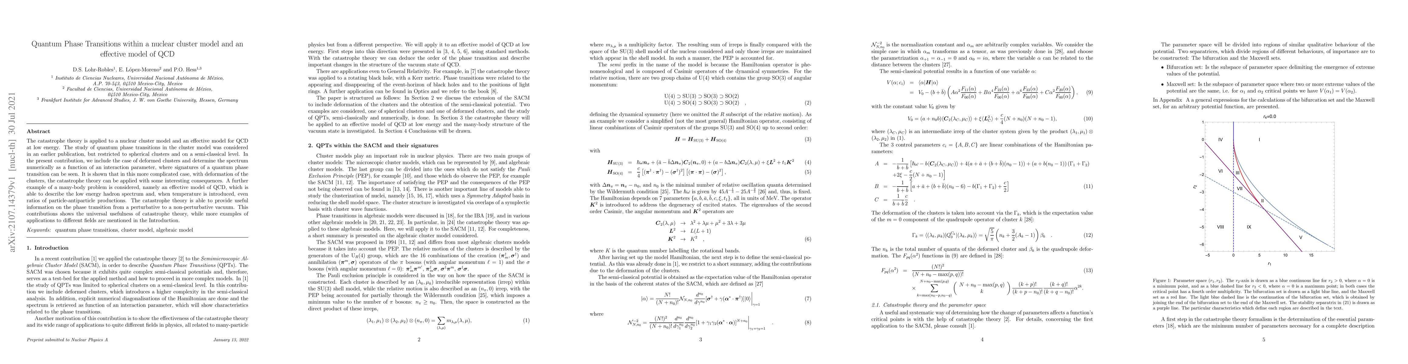 Researchers applied catastrophe theory to nuclear cluster models and an effective QCD model, finding signatures of quantum phase transitions and useful information on phase changes in a non-perturbative vacuum.