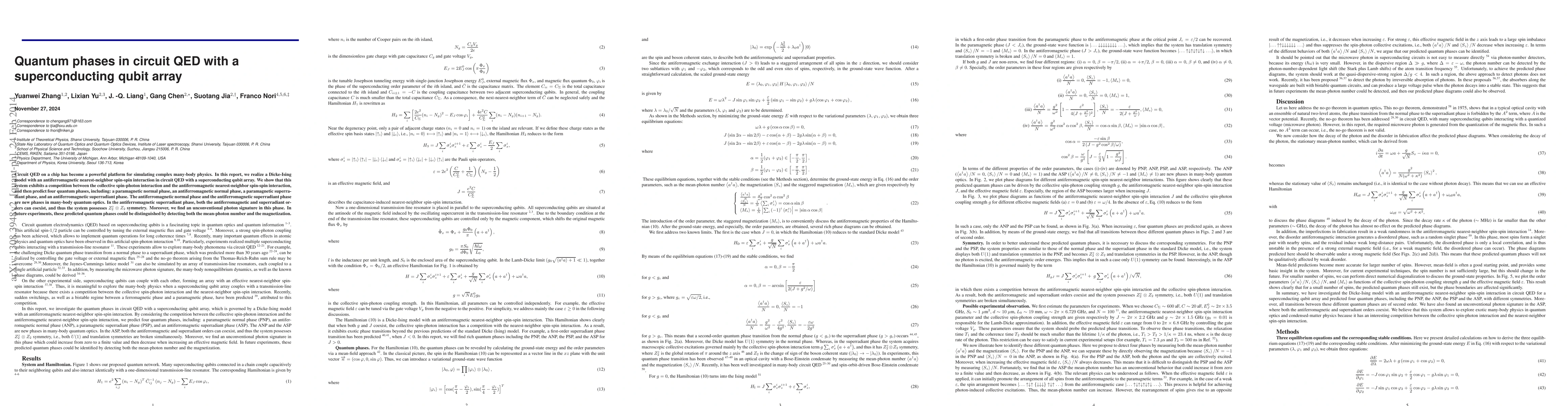 This paper explores quantum phases in circuit QED with a superconducting qubit array, realizing a Dicke-Ising model that exhibits competition between collective spin-photon interaction and antiferromagnetic spin-spin interactions. It predicts four quantum phases, including novel antiferromagnetic normal and superradiant phases, with the latter showing coexistence of antiferromagnetic and superradiant orders and an unconventional photon signature.