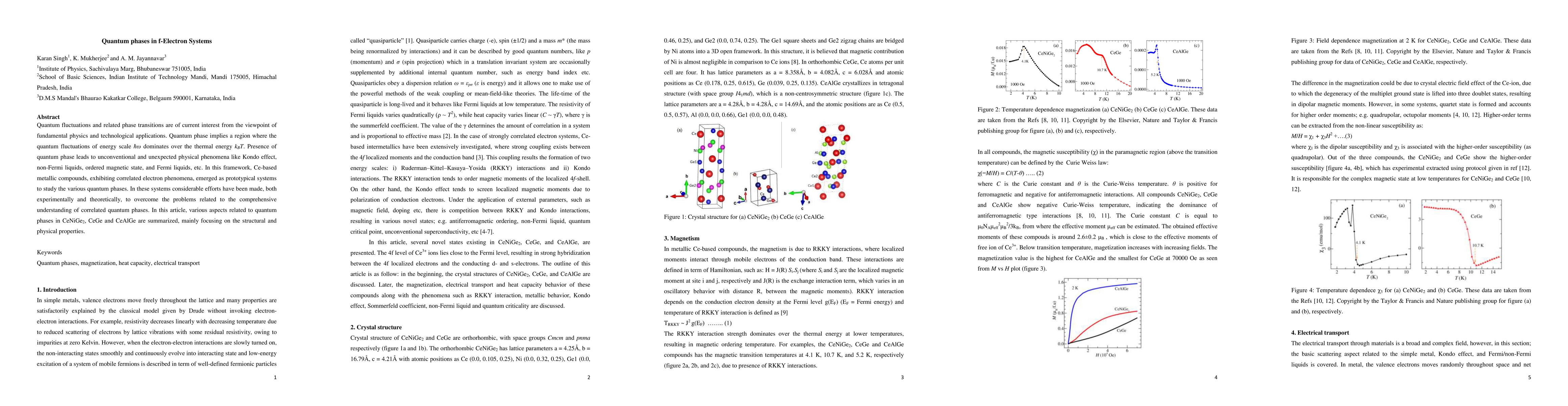 Researchers investigate quantum phases in certain metals, including CeNiGe2, CeGe, and CeAlGe, to understand their unique properties and behaviors. They summarize key findings on structural and physical properties of these systems, shedding light on their potential applications.