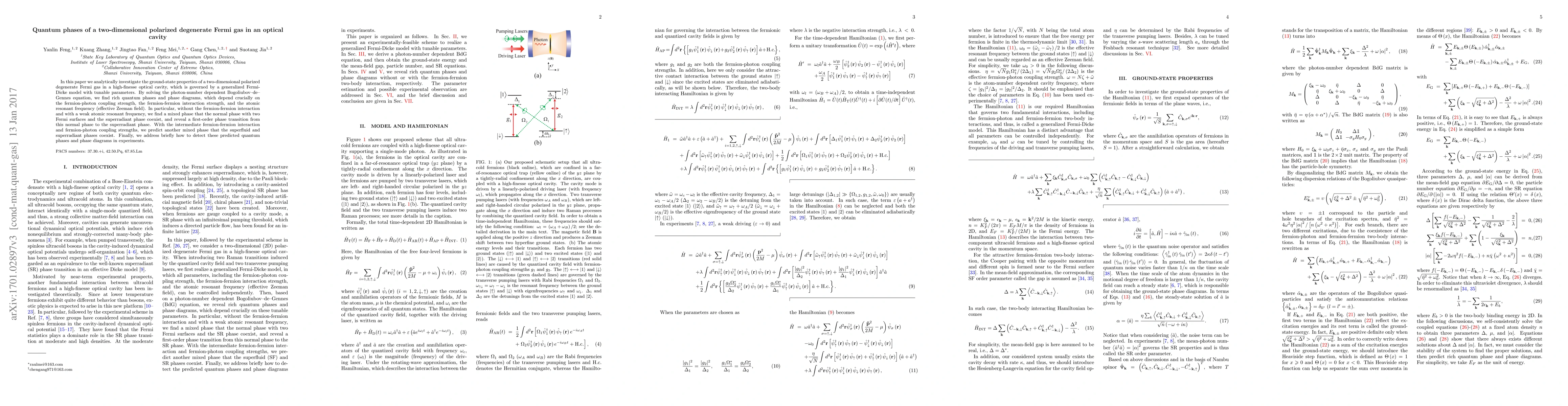 Researchers discovered quantum phases in a two-dimensional polarized degenerate Fermi gas trapped in an optical cavity, which can exist alongside normal, superfluid, and superradiant states depending on coupling strengths.