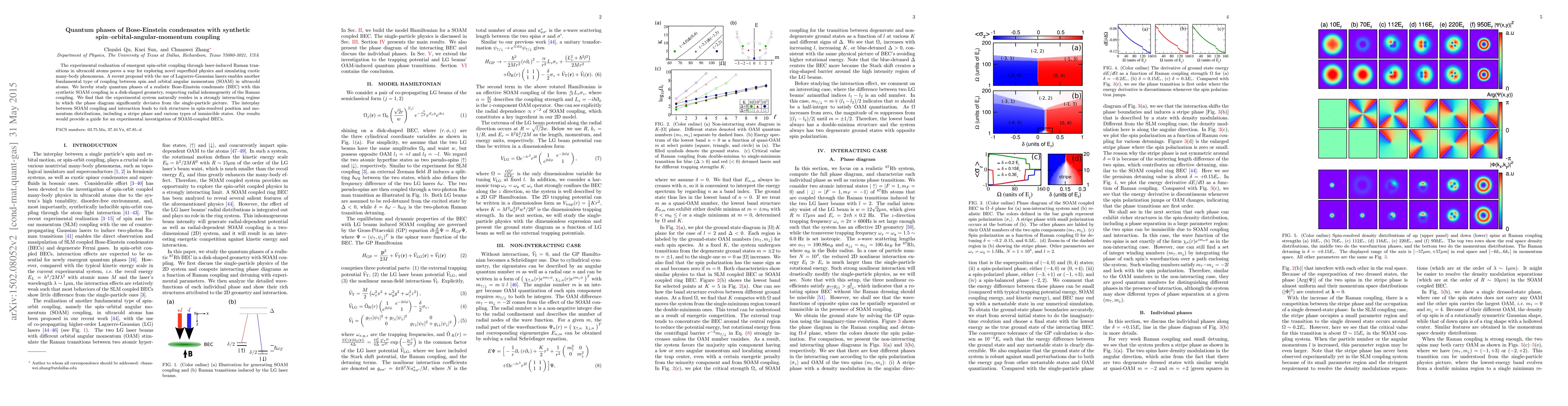 The experimental realization of emergent spin-orbit coupling through laser-induced Raman transitions in ultracold atoms paves the way for exploring novel superfluid physics and simulating exotic many-body phenomena. A recent proposal with the use of Laguerre-Gaussian lasers enables another fundamental type of coupling between spin and orbital angular momentum (SOAM) in ultracold atoms. We hereby study quantum phases of a realistic Bose-Einstein condensate (BEC) with this synthetic SOAM coupling in a disk-shaped geometry, respecting radial inhomogeneity of the Raman coupling. We find that the experimental system naturally resides in a strongly interacting regime in which the phase diagram significantly deviates from the single-particle picture. The interplay between SOAM coupling and interaction leads to rich structures in spin-resolved position and momentum distributions, including a stripe phase and various types of immiscible states. Our results would provide a guide for an experimental investigation of SOAM-coupled BECs.