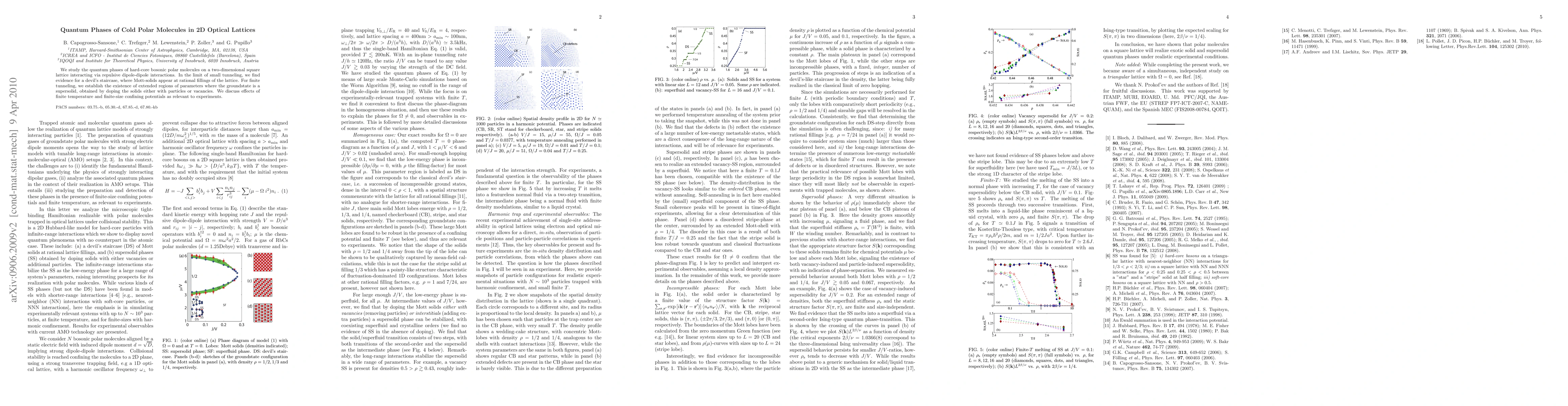 This paper investigates the quantum phases of hard-core bosons in 2D optical lattices with dipole-dipole interactions, revealing a devil's staircase of solid phases at rational fillings and extended supersolid regions at finite tunneling. The study also explores the transition mechanisms and the impact of temperature and confining potentials.