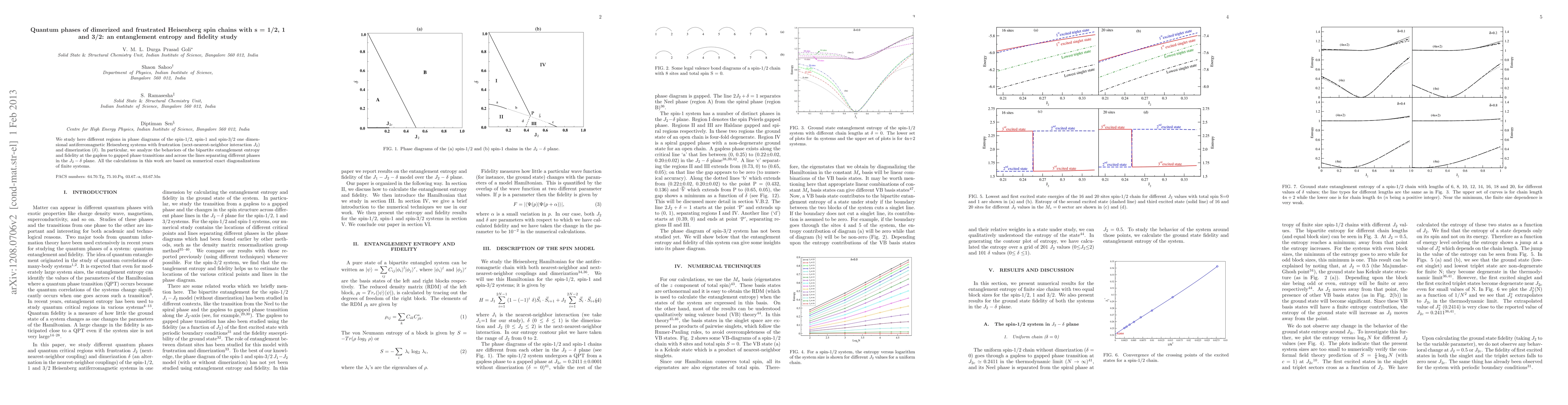 Researchers studied quantum phases in one-dimensional Heisenberg spin chains with different spins and interactions, analyzing entanglement entropy and fidelity at phase transitions.